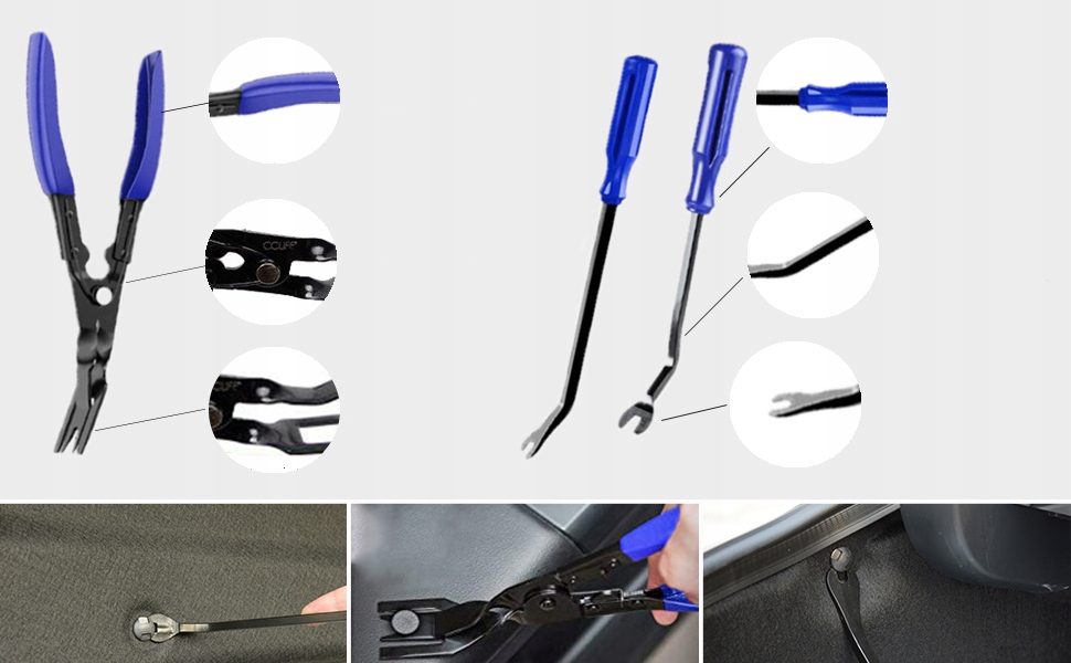 - ???2 шт. плоскогубців для зняття затискачів і 1 шт. плоскогубців для зняття дверних накладок? Наші плоскогубці виготовлені з марганцевої сталі, міцні та міцні, їх нелегко зламати під час використання та мають тривалий термін служби. Прогумована рукоятка не ковзає та не зношується, а ергономічний дизайн забезпечує винятково легку та зручну роботу.