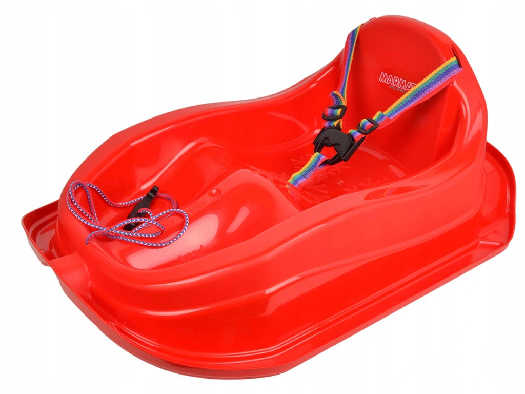Санки мають ергономічне сидіння, високу спинку та надійна триточкова система ременів безпеки. Вони також оснащені мотузкою з ручкою для перетягування.