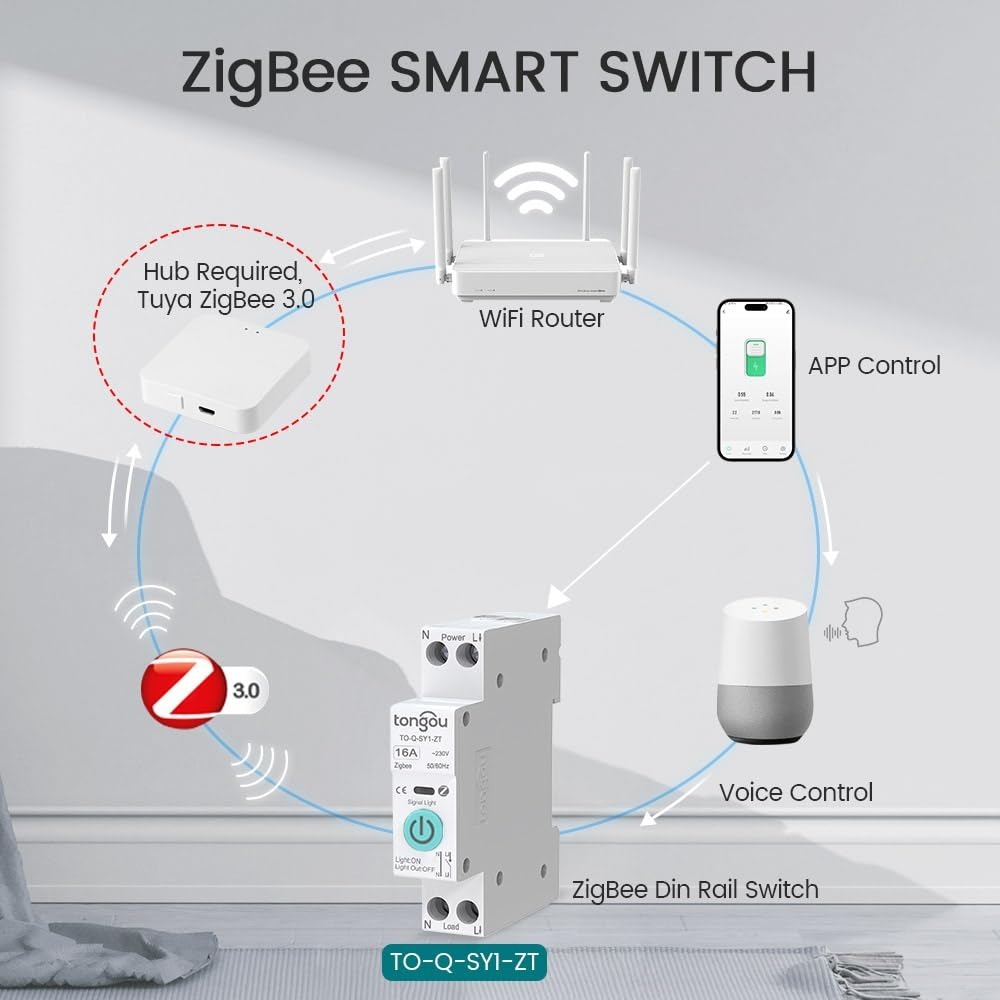 Бачення Зігбі може працювати з Туєю та розумним життям. Zigbee пропонує ефективну топологію мережі решітки з дешевим передачею даних з багатьма стрибками, що робить її ідеальною для розумних будинків. Intelligent Zigbee Switch також може застосовуватися до Google, Amazon Alexa та Yandex Alice.