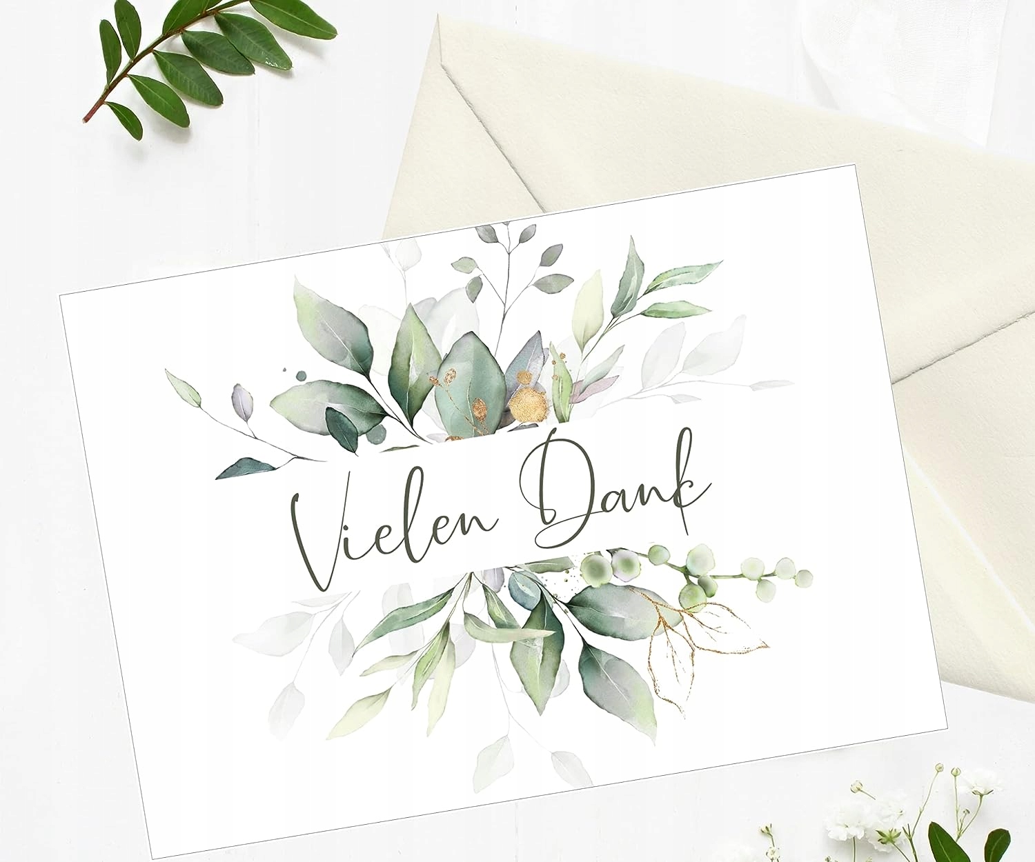 Дякую "Вілен Данк" у класичному дизайні з квітковими елементами в зеленому та золоті. Набори складаються з 25 складних карт у форматі DIN A6 (14,8 х 10,5 см).