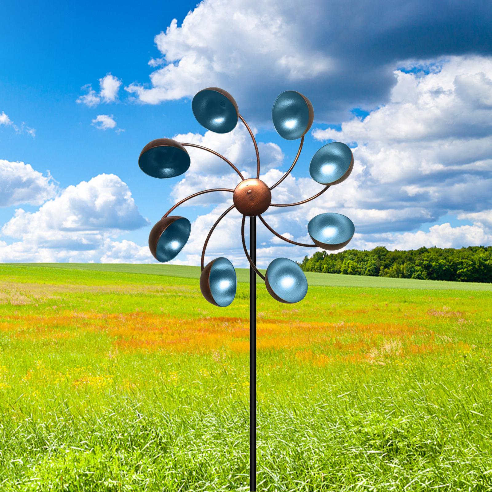 26-дюймовий залізний квітковий вітряк, садовий декор, весняна доріжка, синій