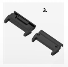 Ми надсилаємо два чорні адаптери № 2 з фотографії нижче. Адаптери з'єднують пояс з годинником.