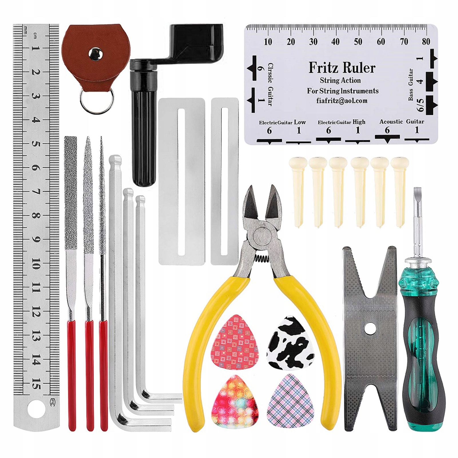 - Інструменти для ремонту гітари, розроблені для завершення найпоширенішого ремонту гітари та регулювання, містять кілька корисних інструментів обслуговування.