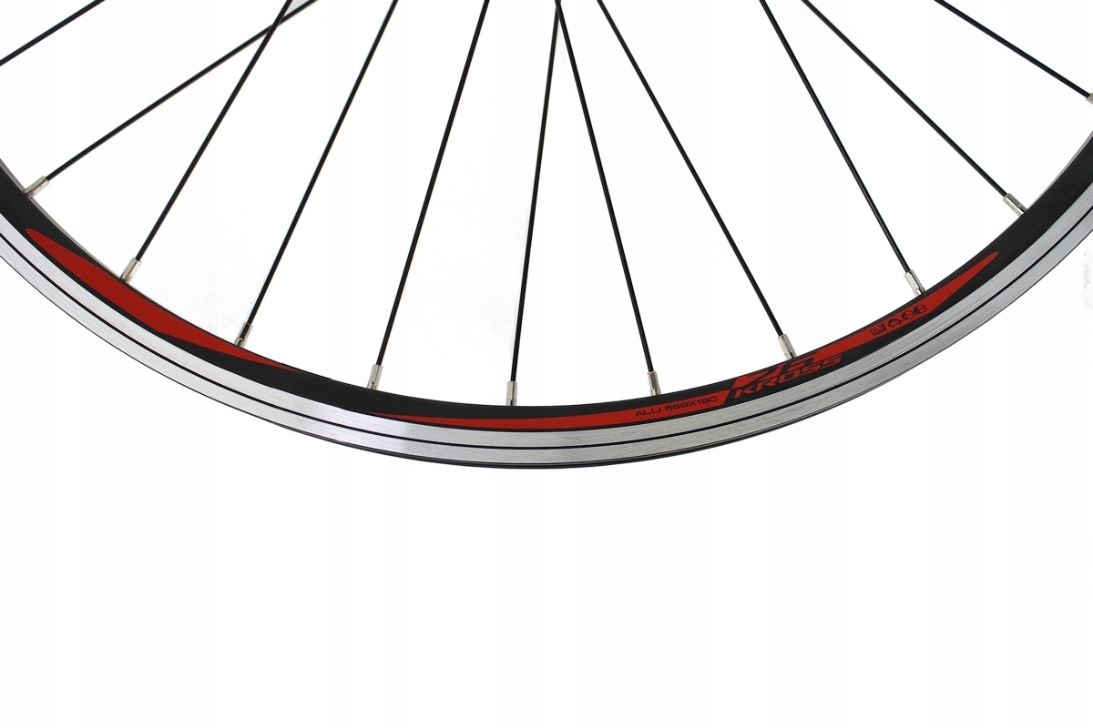 Переднє колесо, створене з оригінальних компонентів польського края Кросса, алюмінієвого центру на кулькових підшипниках та чорних спинках SLE. Весь створює колесо, яке конструктивно витримує великі перевантаження, є жорстким і виглядає ефективно. Модель у розмірі 26 "(559x19c).