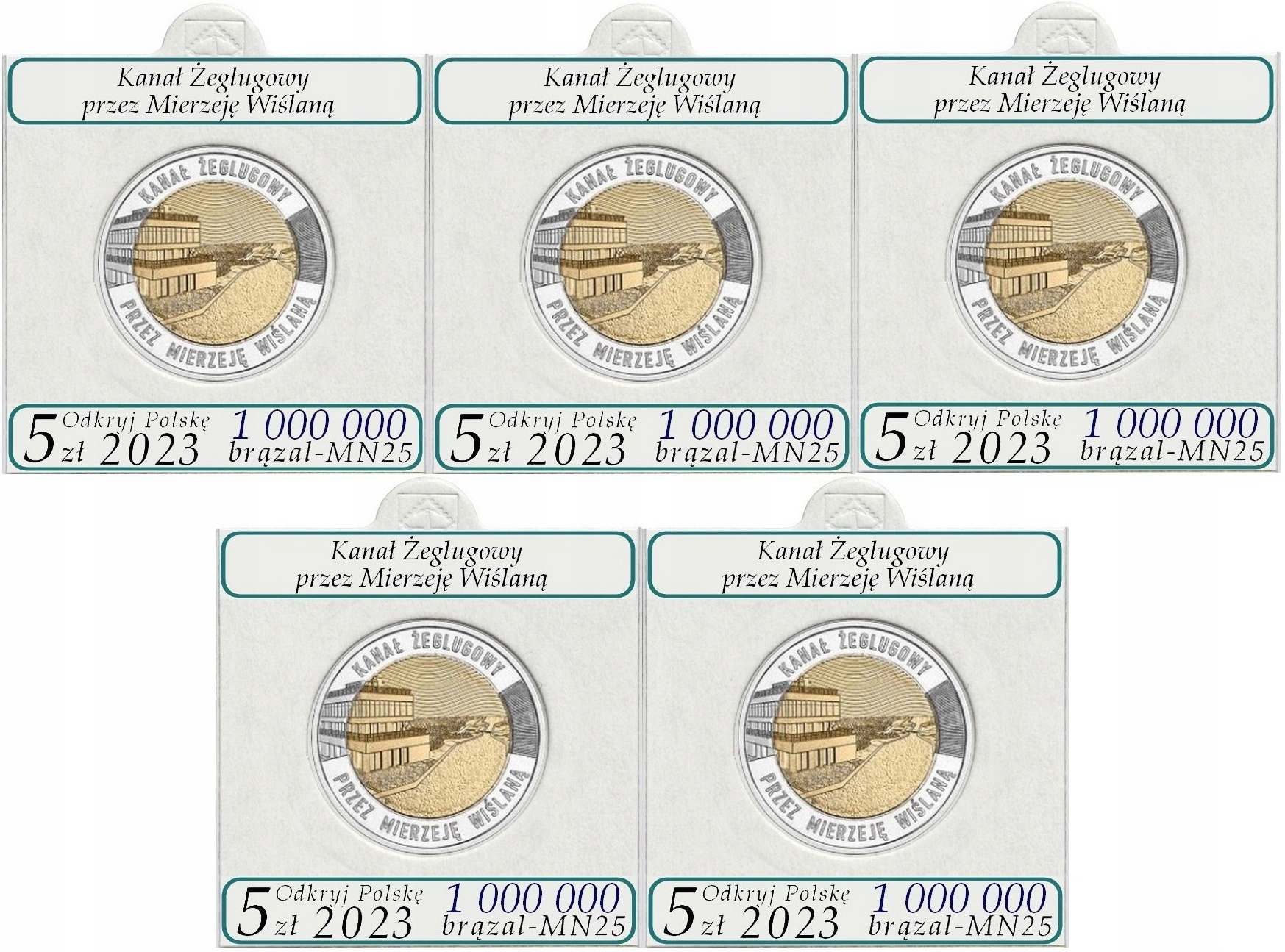 5 монет номіналом 5 злотих. Відкрийте для себе Польщу – судноплавний канал через Віслинську косу