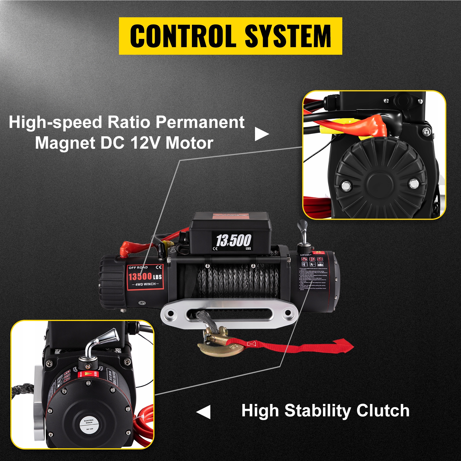 Відмінна продуктивність: Ємність електричної лебідки: 13,500 фунтів (6,125 кг); Потужність: 4,8 кВт (6,8 к.с.); Передача: 265: 1. Потужний двигун підключений до 3-ступінчастої системи планетарної передачі, що забезпечує більшу силу витягу та більшу швидкість. Підходить для автомобілів, човнів, вантажних автомобілів, джипів, перероблених транспортних засобів та багатофункціональних причепів.