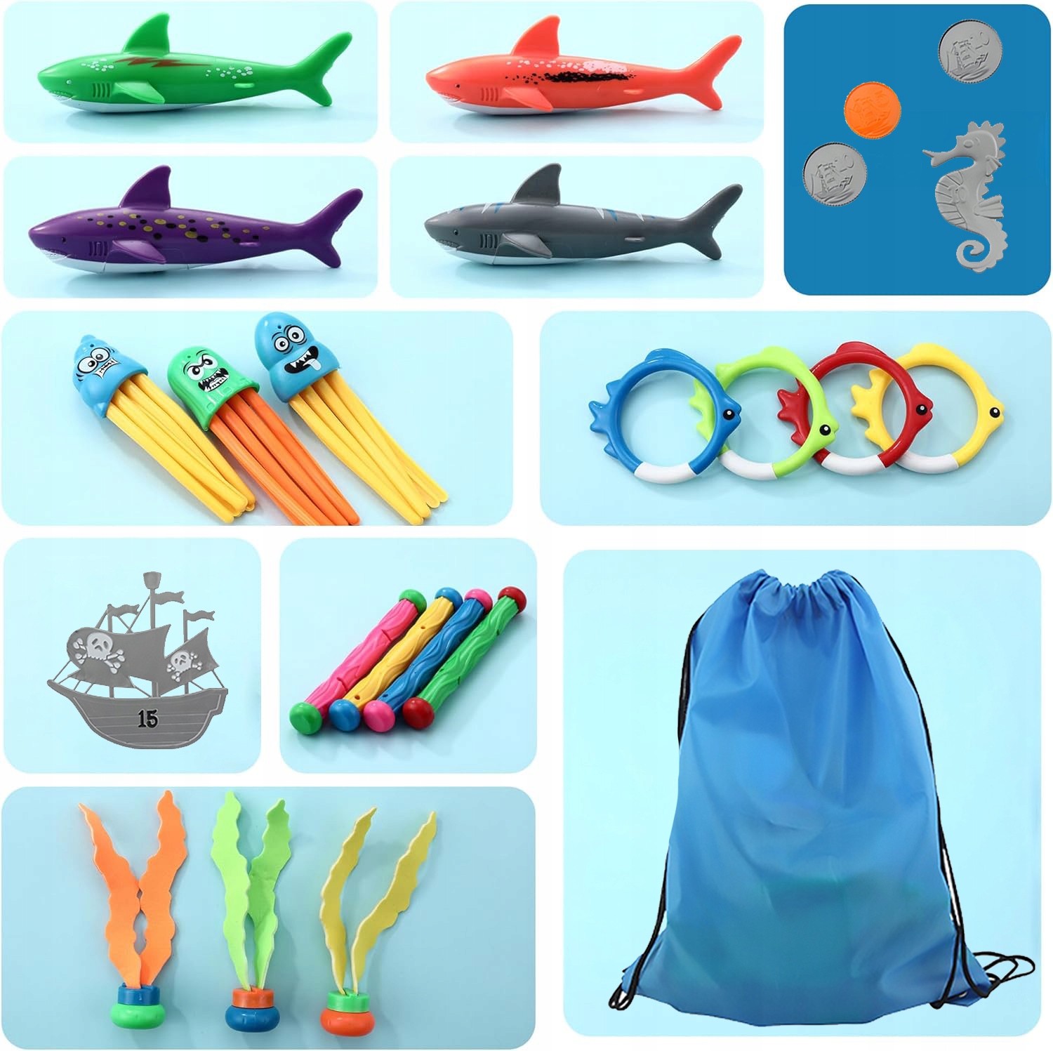 Наш набір з 27 барвистих іграшок для дайвінгу - чудовий вибір для літа - для басейну, озера або на пляжі. Елементи були розроблені таким чином, щоб вони впали на дно і рухалися у воді , заохочуючи дітей грати активні та відкривати підводні скарби.