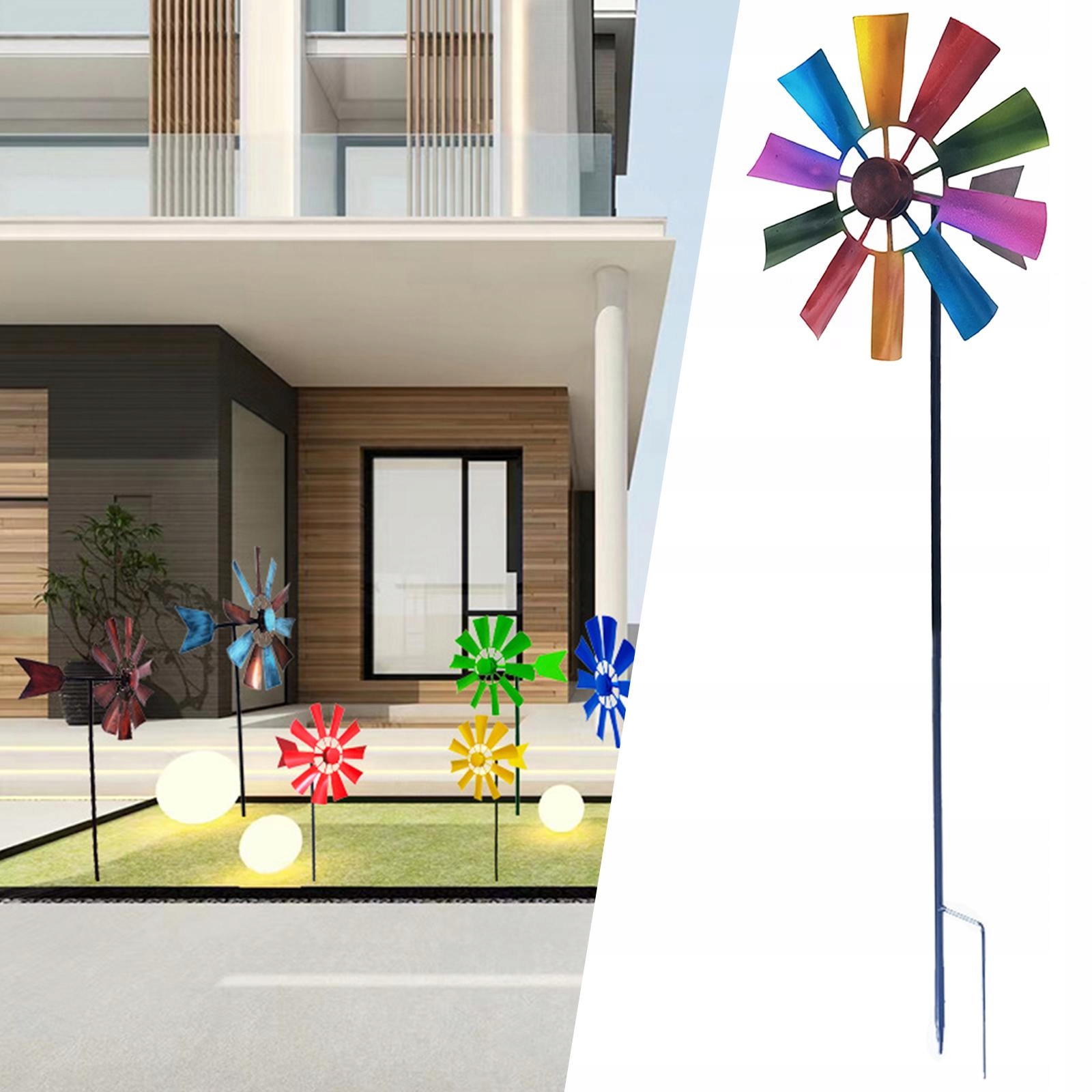 Прекрасний вітер: Прекрасний вітер - прекрасне доповнення до кожного декору зовні. Металевий вітряк створює приголомшливе поєднання кольорів, що рухаються, коли квіти формують вітер. Чудове доповнення до ганку чи двору. Також чудовий подарунок для коханої людини. Дні. Він дуже підходить для садів, дерев, квітів, квітів, огорожі та тротуарів.