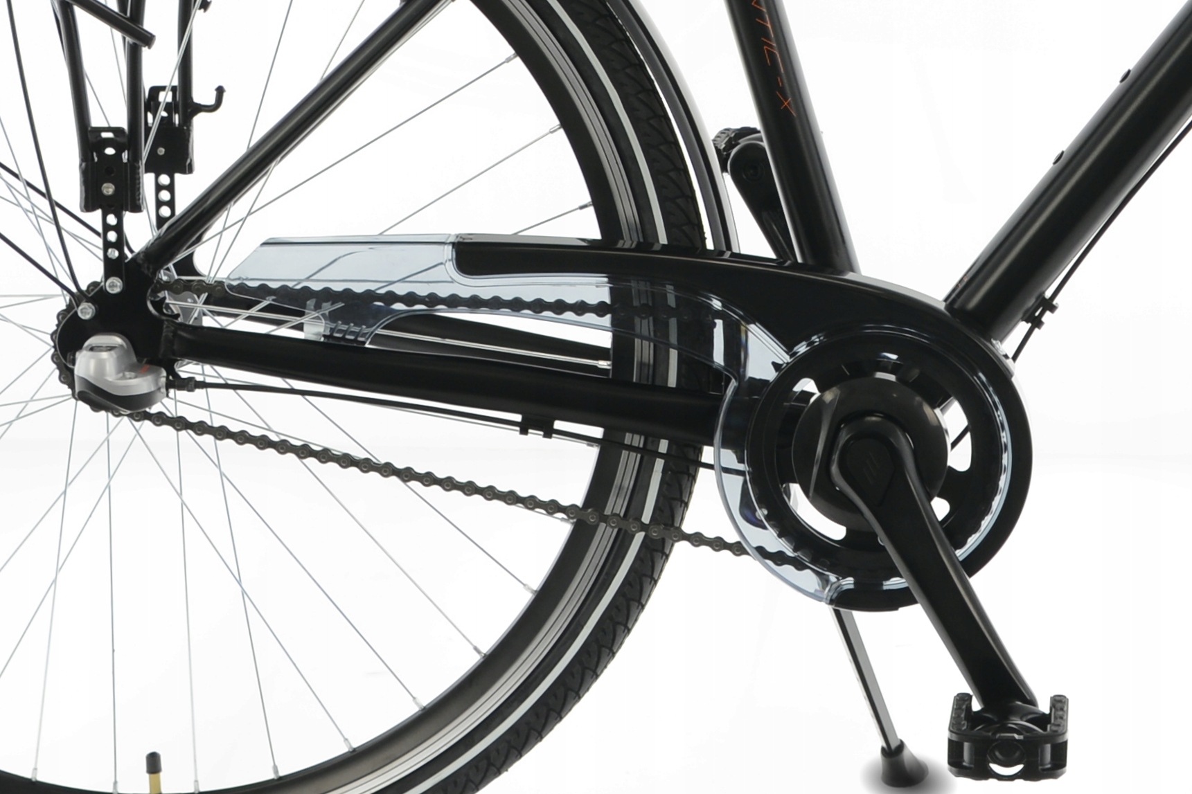 Це міцний польський велосипед з алюмінієвою рамою на 28″ колесах і аксесуарами Shimano Nexus (3 швидкості). Обладнання Shimano забезпечує тиху роботу, безвідмовну роботу та безпроблемне перемикання передач. Амортизатор SR Suntour забезпечить комфорт під час їзди лісовими стежками та незначними нерівностями.