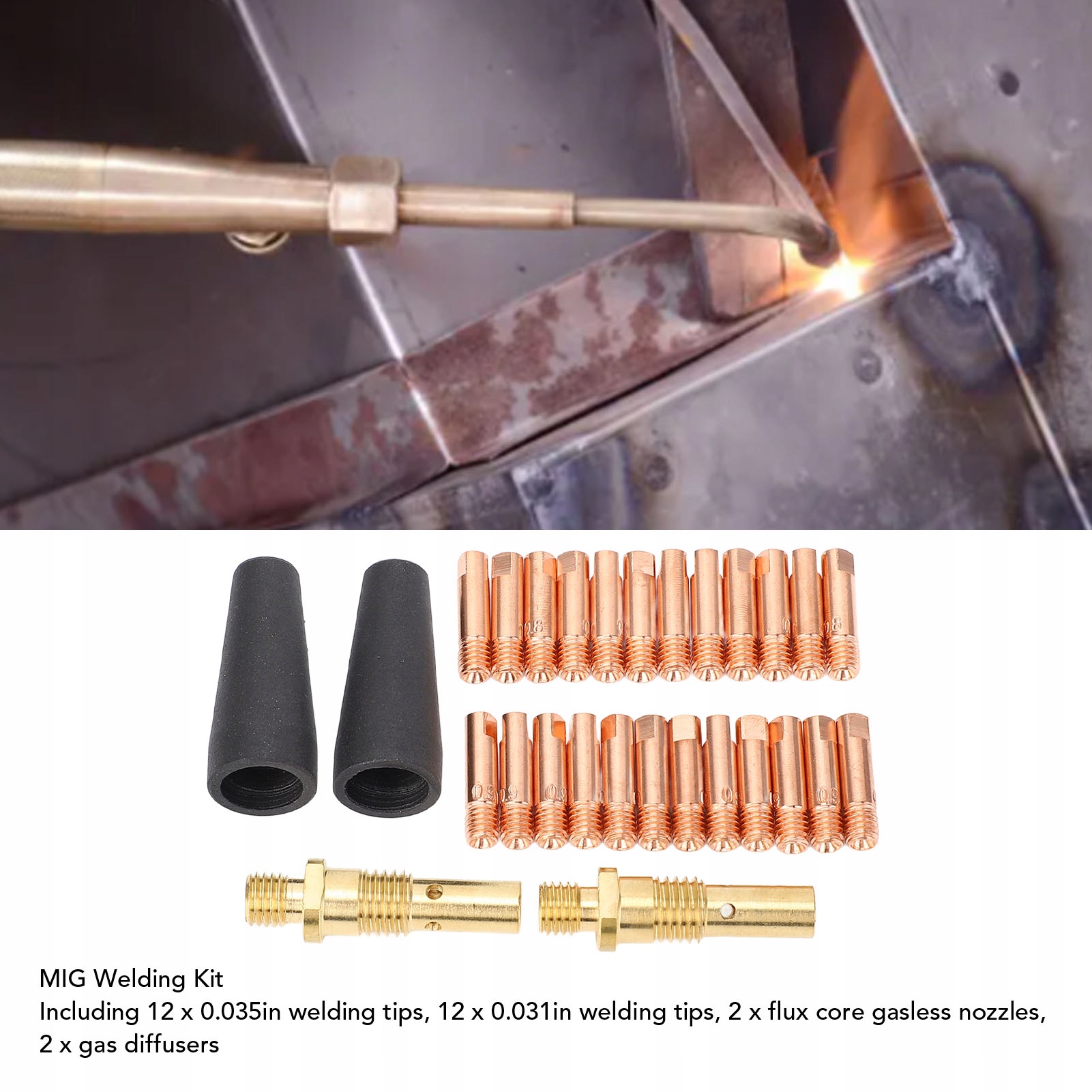 1. Частини плану: цей набір зварювання містить 24 ПК. > 2. Відповідна модель: Цей набір наконечників із зварювальною форсункою підходить для Weld Pak 100HD 125HD 140HD 180HD, для Іствуд Міг 135/175 та інших зварювальників, має сильну сумісність