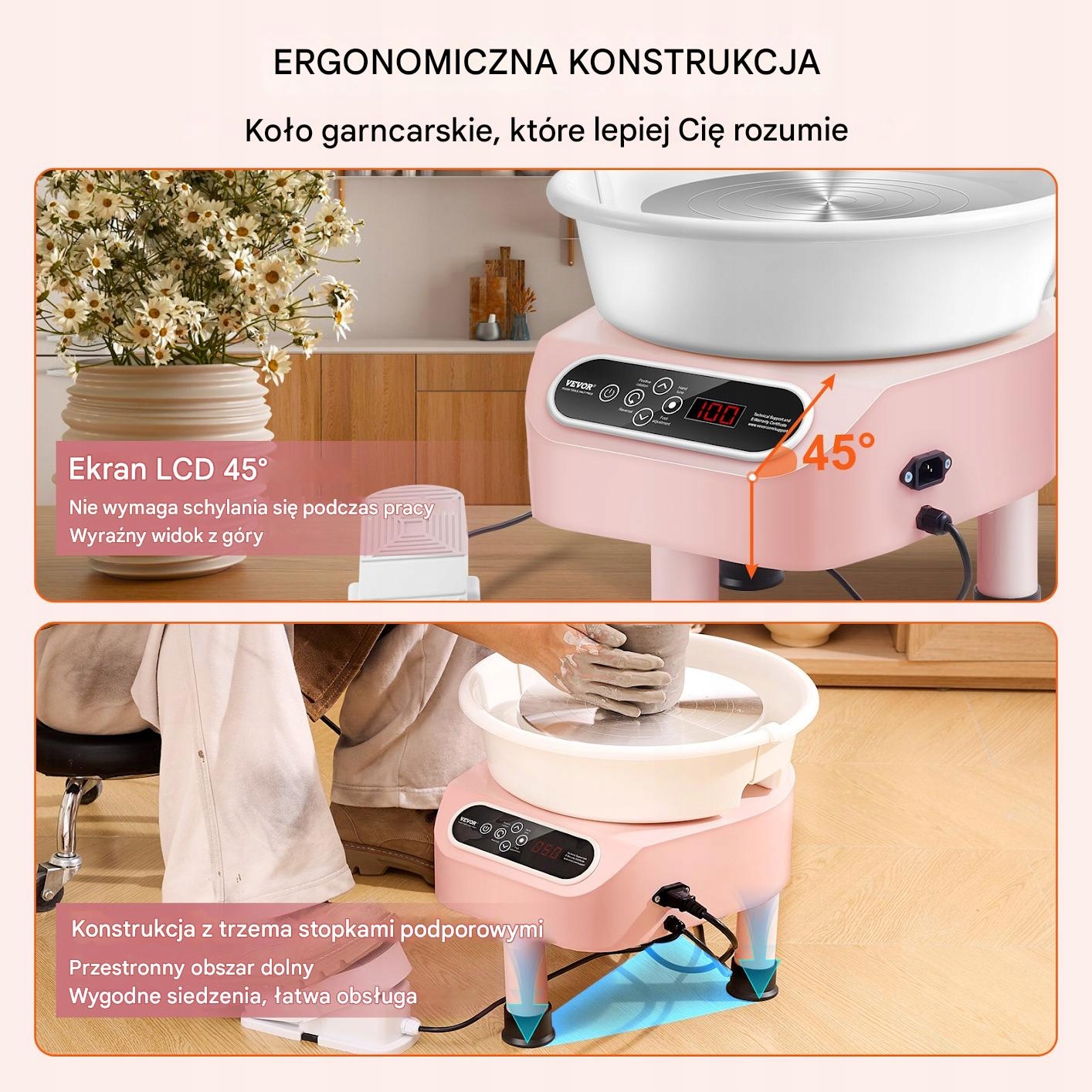 Створіть унікальні керамічні роботи з професійним гончарним колесом , що забезпечує стабільність, точність та повний контроль над процесом прокатки. Прямий привід гарантує плавний оборот як на низьких, так і на високих швидкостях, мінімізуючи ризик деформації керамічних форм. РК -сенсорний екран та Педаля стопи дозволяє легко регулювати обертання та напрямок повороту, що дозволяє отримати повну свободу роботи.