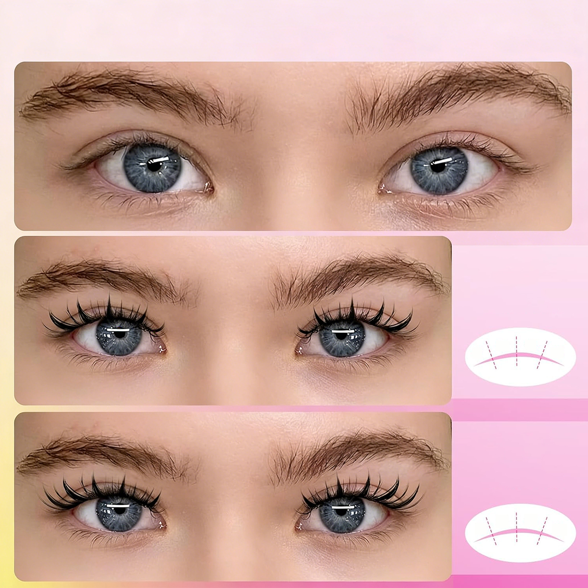 💛 Візьміть салон додому: пучки вій легко наносити. Окремі вії розділені на частини, які ви можете легко вибрати та нанести самостійно. Ви можете наносити вії різної довжини та стилю, залежно від випадку. Економте на нарощених віях. Трохи потренувавшись, ви станете майстром нарощування вій своїми руками!