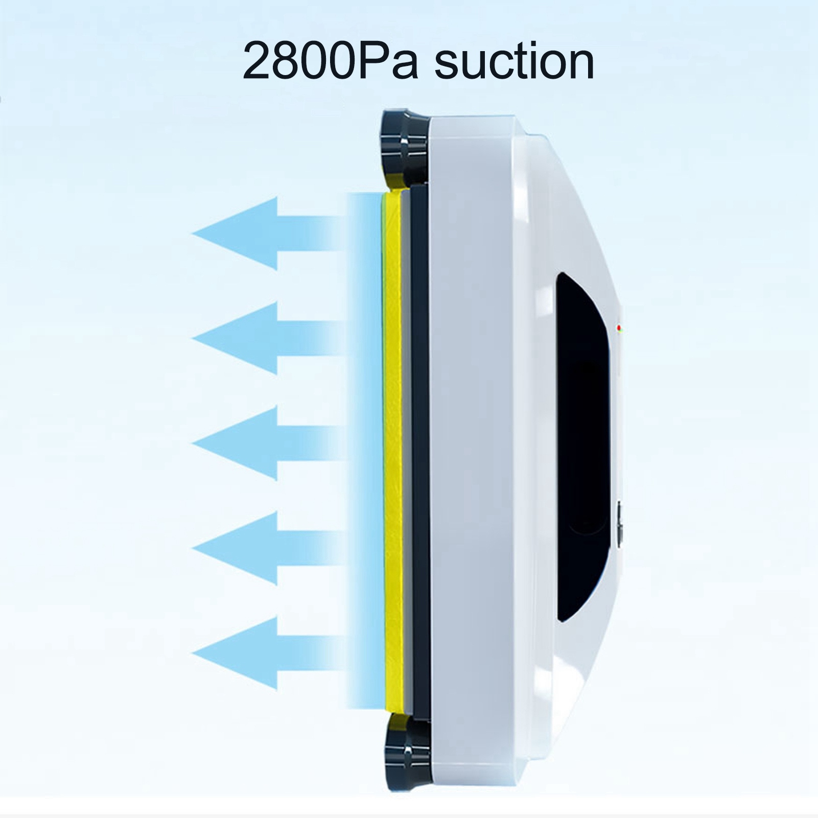 3. Сильне всмоктування 2800 PA: робот для миття вікон має потужне всмоктування 2800 PA, не ковзає, багатошаровий композитний дизайн гусениці, внутрішній міцний фрикційний матеріал із шестернями, призначений для кріплення гладких поверхонь.