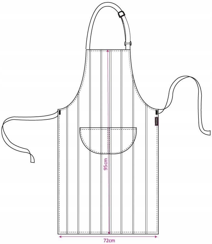 Фартух виготовлений з дуже міцної бавовняної тканини. Він доступний у двох естетичних кольорових версіях. Має практичну безпечну кишеню спереду. Довжина регулюється на рівні шиї.