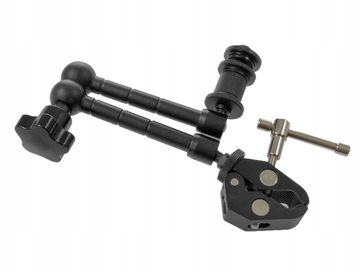 Універсальний шарнірний кронштейн 29 см дозволяє підключати різні типи фото/відео аксесуарів - лампи, мікрофони, монітори тощо - для камери, обладнання або роликових ковзанів для камери, а завдяки прикріпленому тримачу крабового затискача труби або поперечини діаметром не більше 5 см.