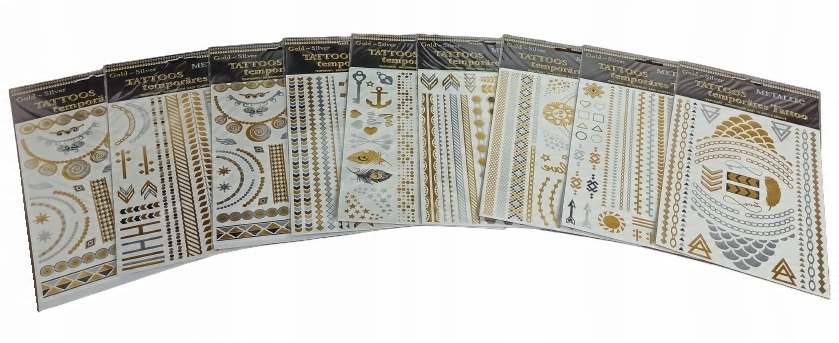 Для замовлення від мінімум 10 одиниць (один безкоштовний для всього замовлення): 1 АРКУШ МЕТАЛЕВИХ ТАТУЮВАНЬ, ВИЗЕРУНКИ МИ НАДСИЛАЄМО ВИПАДКОВО.