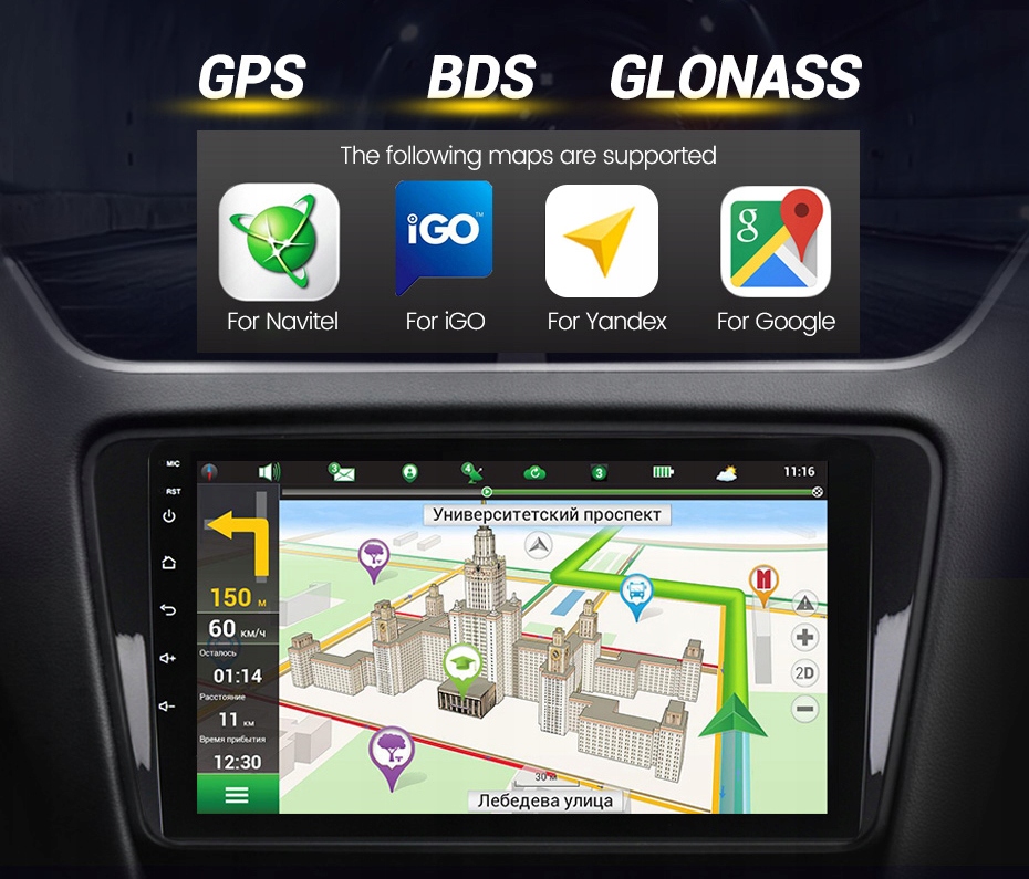 Завдяки вбудованому модулю GPS та антені, що входить до комплекту, ми можемо використовувати будь-яку навігаційну програму в автомобілі, наприклад AutoMapa, Igo, TomTom, MioMap та інші.