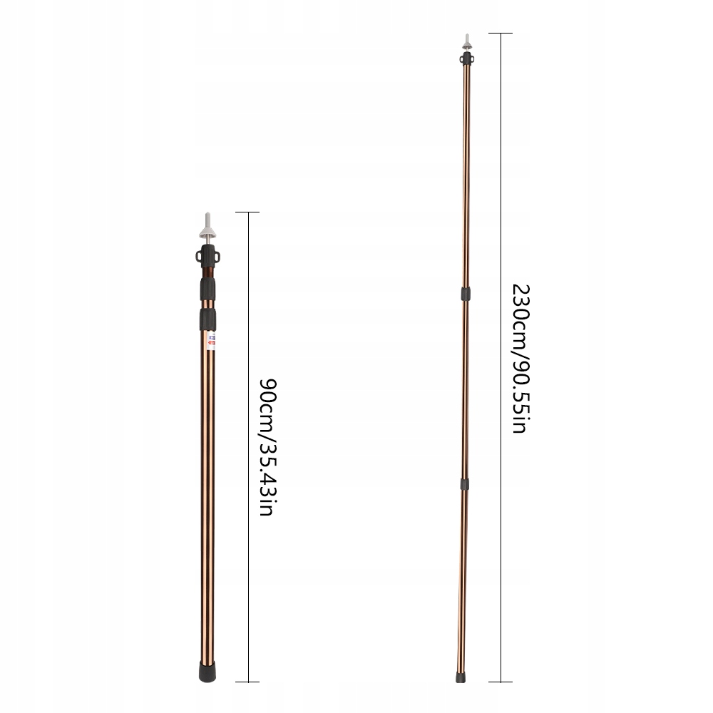 - Завдяки 3-ступінковій конструкції його можна легко відрегулювати в діапазоні від 90 см до 230 см, що робить його придатним для всіх типів наметів.