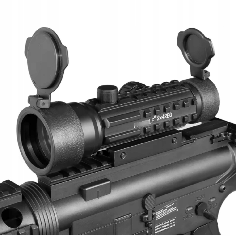 ТАКТИЧНИЙ ОПТИЧНИЙ КОЛІМОР EG 2X42 З ЧЕРВОНОЮ КРАПКОЮ ТА ЧЕРВОНИМ І ЗЕЛЕНИМ ПІДСВІЧУВАННЯМ, СУМІСНИЙ З РЕЙКАМИ ПІКАТІНІ 11 ММ ТА 20 ММ, ПІДХОДИТЬ ДЛЯ НАВЧАННЯ СТРІЛЬБИ НА ПОЛЮВАННІ НА ВІДКРИТОМУ МІСЦІ