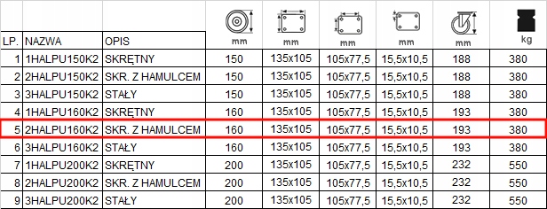 2halpu160k2 поблизу алюмінієвого поліуретану FI160 Навантаження 380 кг