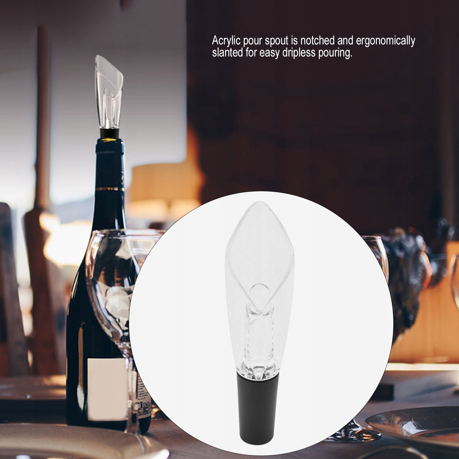 2. Герметичне ущільнення та безпечне розливання: гумова сходинка звужена та ребриста для створення герметичного ущільнення для винних пляшок будь-якого розміру, а акриловий носик вирізаний і ергономічний під кутом для легкого бездушного розливання.