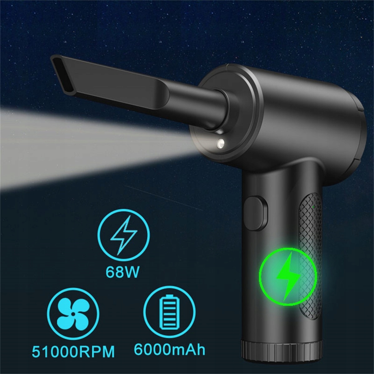 Електричний бездротовий пиловий повітродувка постачає повітря високого тиску, створюючи дуже сильний повітряний потік і видаляючи пил з поверхні предметів.