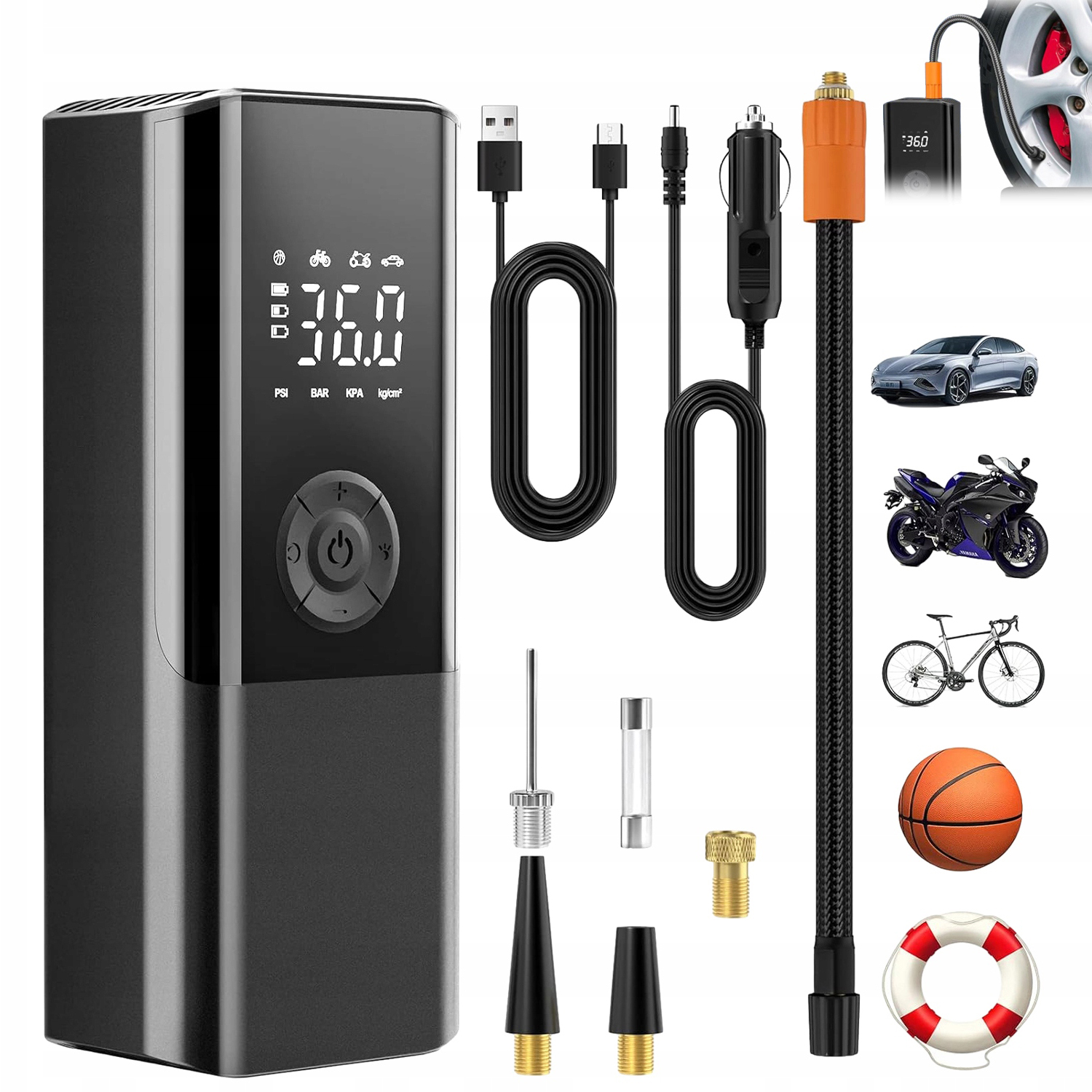 - ✔️ Електричний насос пропонує два способи живлення, включаючи USB роз'єм для прикурювача та джерела живлення DC12V, що робить цей насос для накачування шин надзвичайно універсальним
