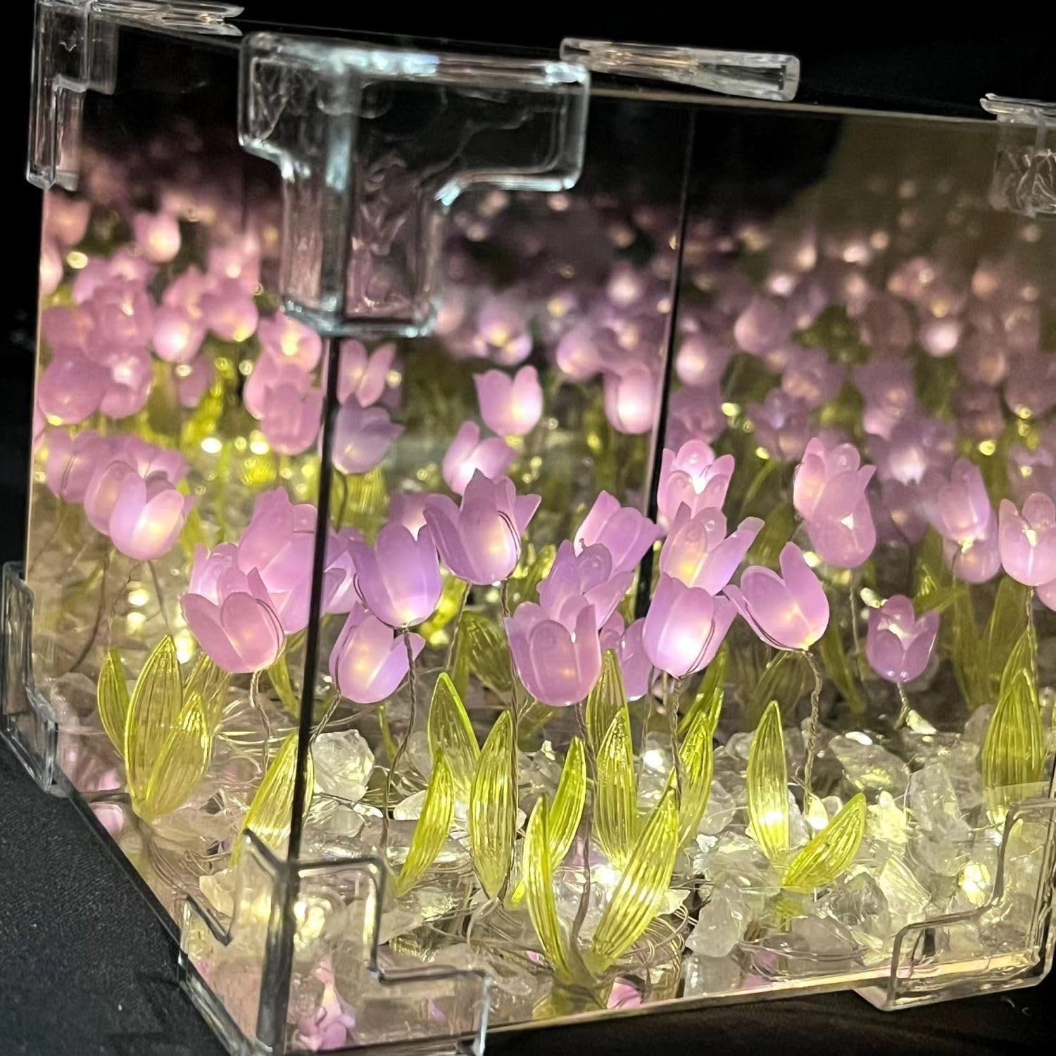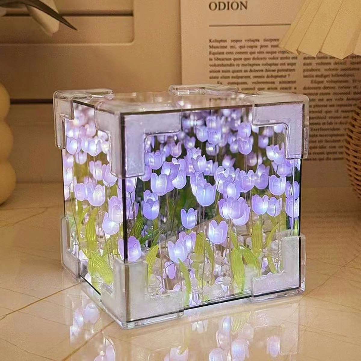 2in1 Квіткова лампа хмари Tulip LED DIY, що світиться на дзеркальному 3D -подарунок