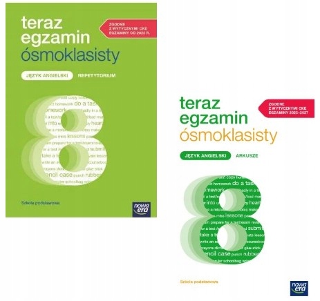 Останнє видання екзаменаційних таблиць «Тепер екзамен у восьмому класі. Англійська мова» містить шість комплектів завдань відповідно до скороченої основної навчальної програми 2024 року та рекомендацій CKE для іспиту з 2024-2025 навчального року.