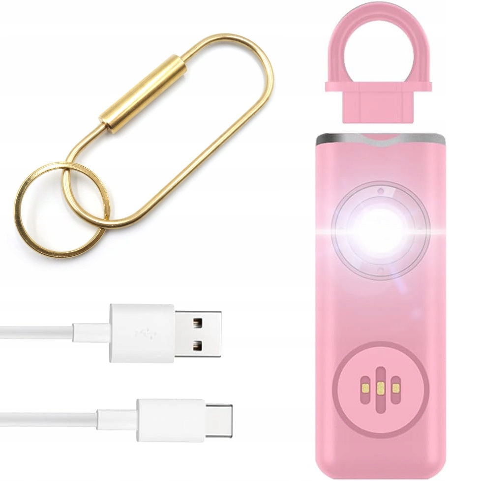 2in1 особиста тривога з ліхтариком + 130 дБ підвіска USB-C Pink зарядка