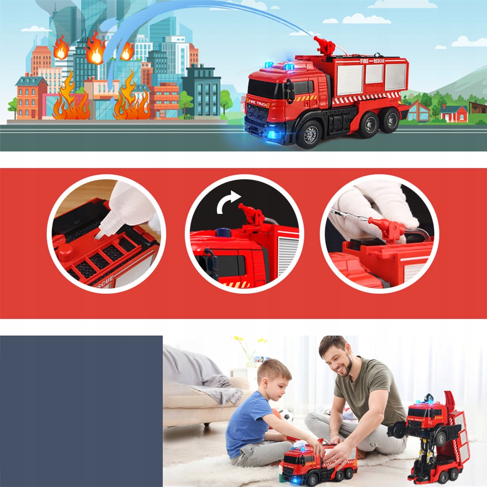 2IN1 RC CAR ПОЖЕЖНА МАШИНА РОБОТ З ДИСТАНЦІЙНИМ КЕРУВАННЯМ ПДУ ПОДАРУНОК