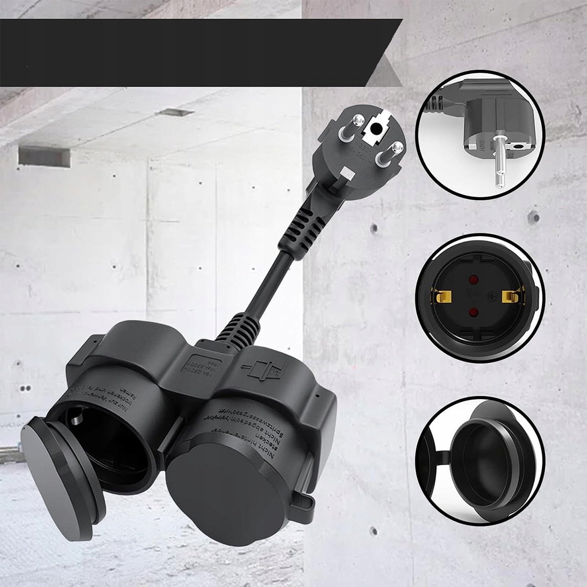 💎💎Подвійна вилка до розетки, зовнішній захисний контакт подовжувача з 2 розетками змінного струму, 2-канальний розгалужувач Schuko Y-подібний з коротким кабелем 5 см, водонепроникний IP44, 3 * 1,5 мм², 250 В/16 А/3500 Вт, чорний💎💎