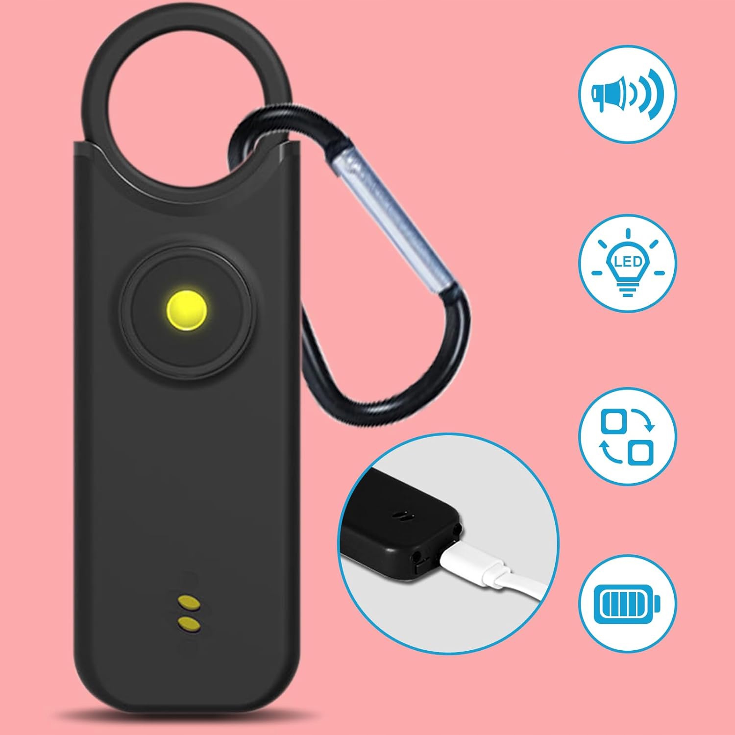 ✅ Найефективніша форма оборони - часто використовується у разі почуття загрози чи фізичної загрози. Цей жіночий кейл -світло з сигналізацією про самовизначення також може бути використаний людьми похилого віку для отримання допомоги у випадку падіння, раптової медичної аварії, нещасних випадків або алергічної реакції.