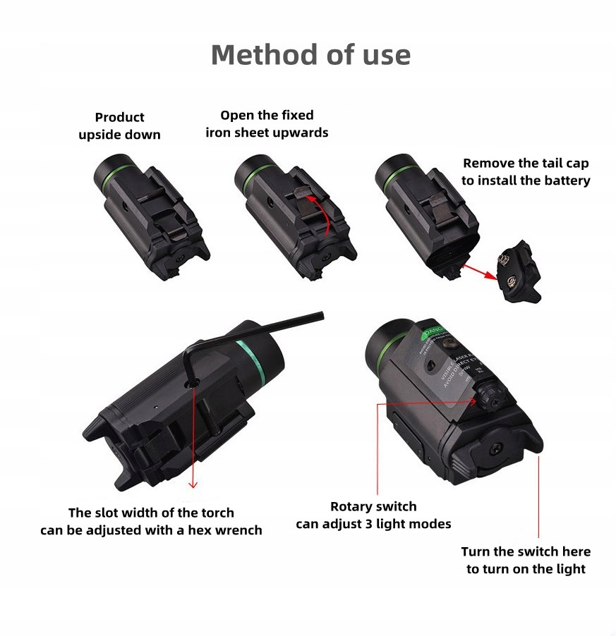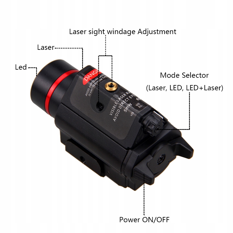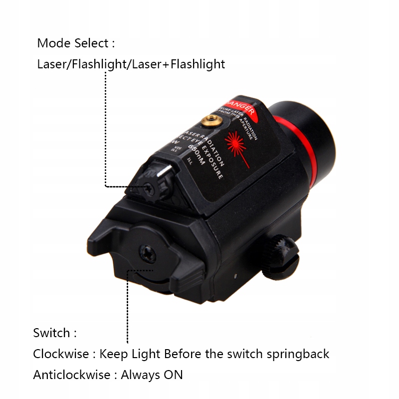 3 режими роботи: лише лазер / лише ліхтарик / лазер + ліхтарик;