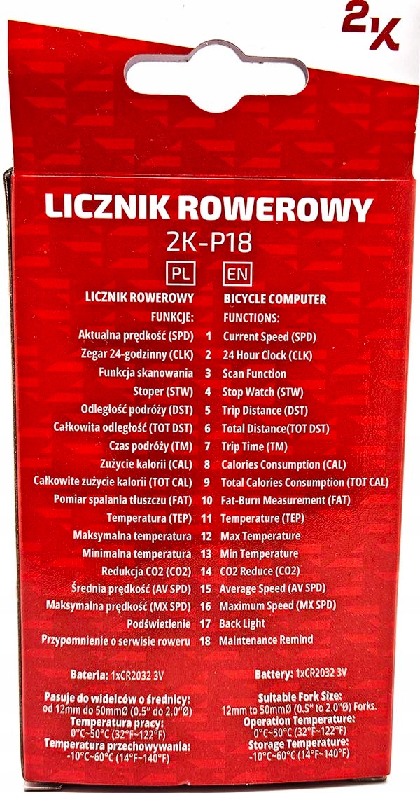В набір входить: лічильник, батарейка CR2032, підставка з сенсором, магніт для спиць, монтажні стрічки, інструкція PL