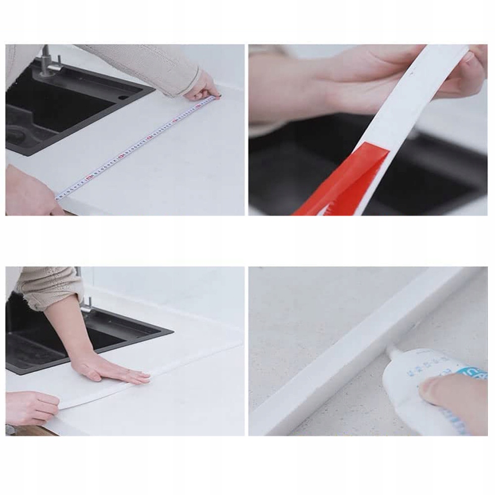 Спочатку очистіть і висушіть поверхню стільниці (або підлоги), відміряйте та відріжте пробку для душу відповідно до вашої довжини, зніміть червону клейку смужку на тильній стороні, приклейте до гладкої поверхні (взимку ви можете використовувати фен, щоб нагріти її, щоб отримати кращу липкість). Для кращої герметизації необхідно використовувати силіконовий герметик, щоб заповнити краї водяного бар’єру та просушити протягом 24 годин, поки герметики не затвердіють (упаковка не містить силіконового герметика).