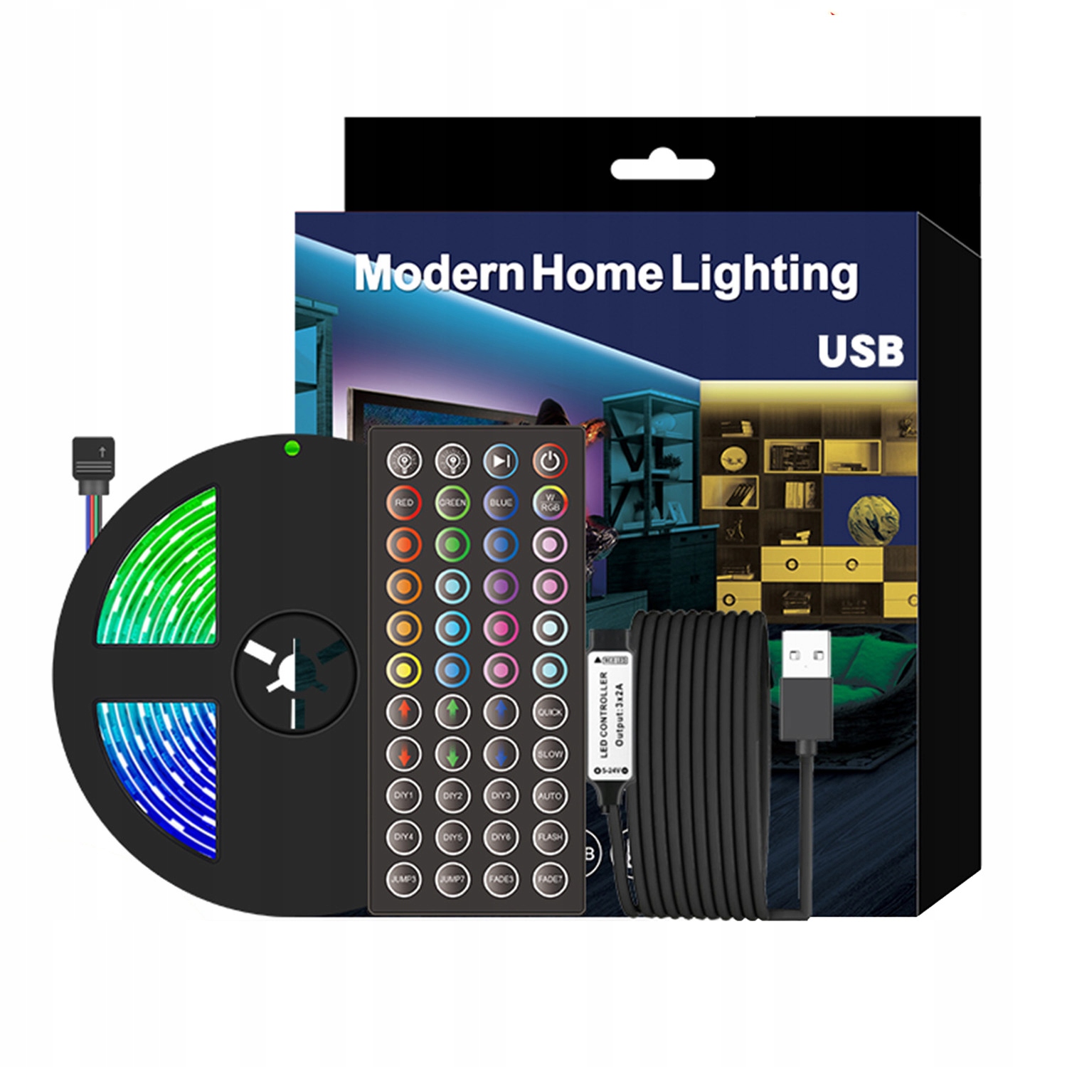 2M USB RGB світлодіодна стрічка + пульт дистанційного керування ТВ монітор IP65 30LED / M