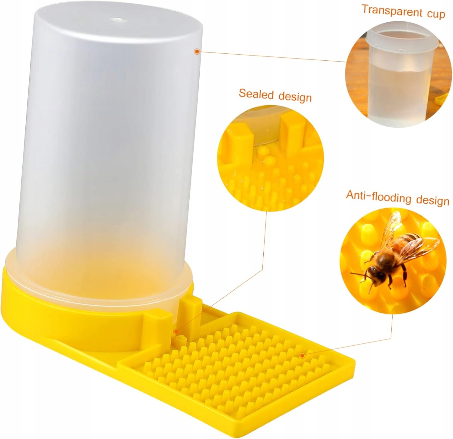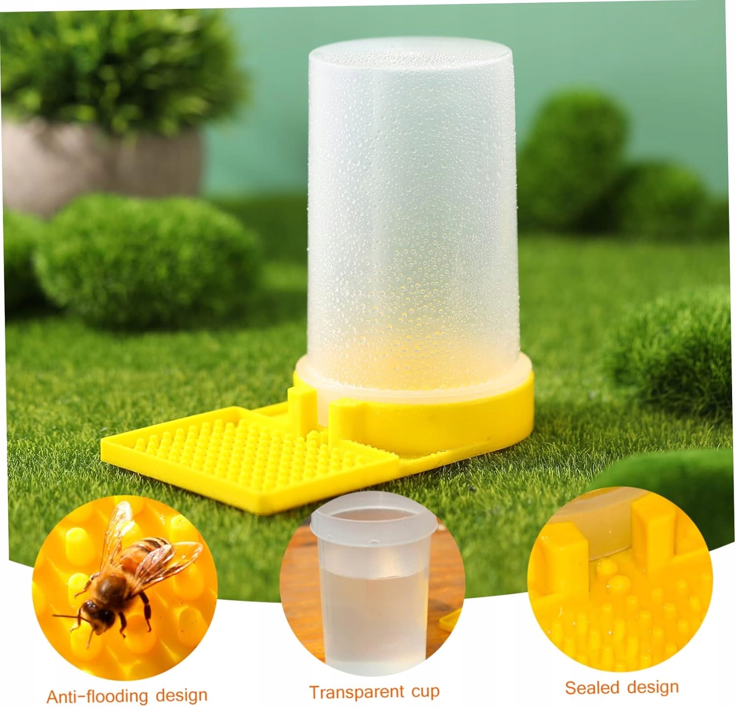 - Прозора годівниця для бджіл: легко спостерігати за бджолиними гніздами, дуже легко спостерігати, скільки води залишилося, і відповідно планувати, не турбуючи бджіл. Після встановлення розташуйте впускний отвір для бджіл у відповідному місці за лічені секунди, щоб бджоли могли природним чином знайти воду для більшого комфорту