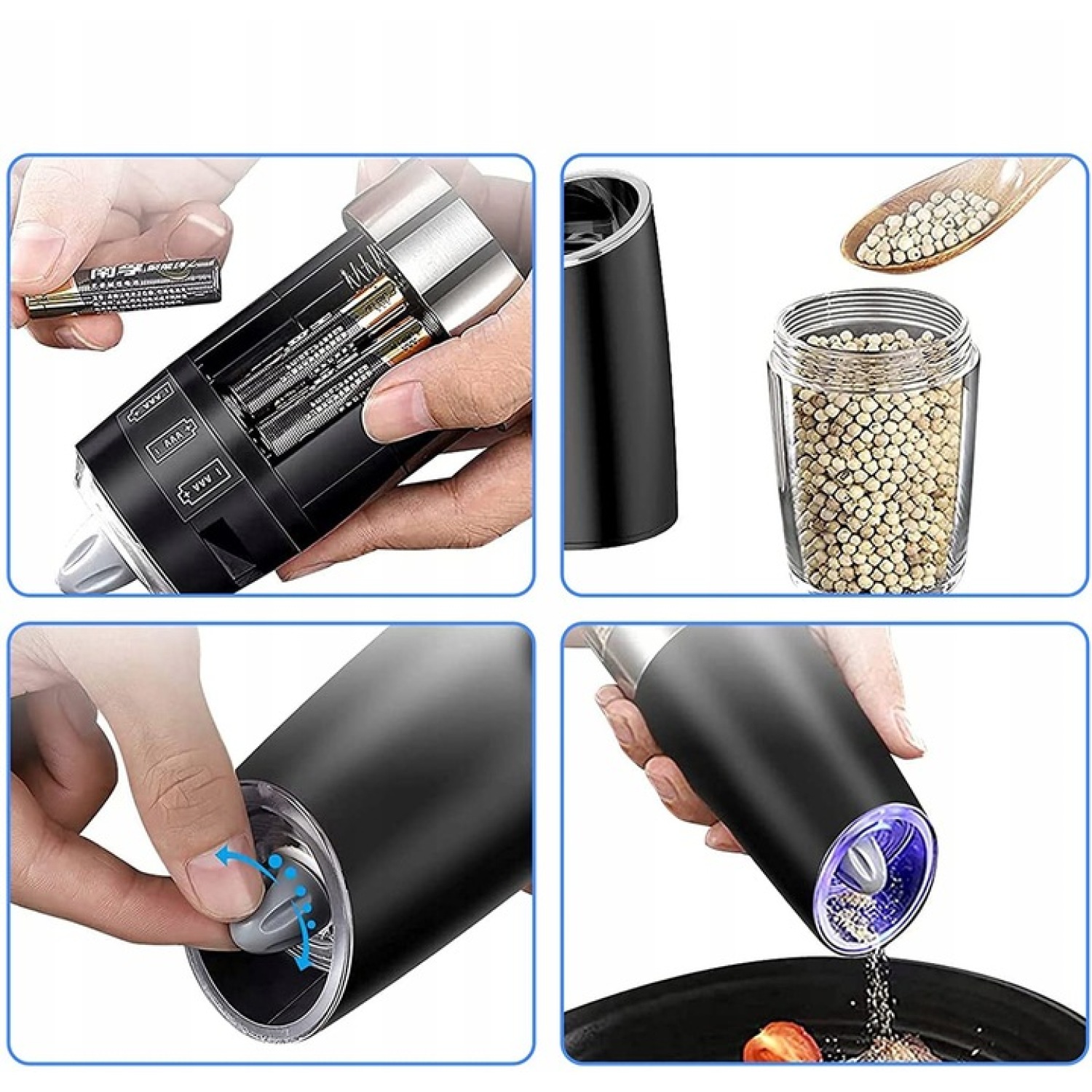 - Світлодіоди, які автоматично входять після запуску шліфувальної машини, що допомагає ретельно розповсюдити спеції на улюблені страви.