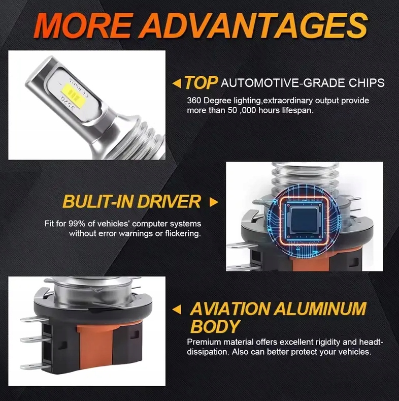 2×Нова високоякісна світлодіодна лампа H15 12 V CSP 6000K