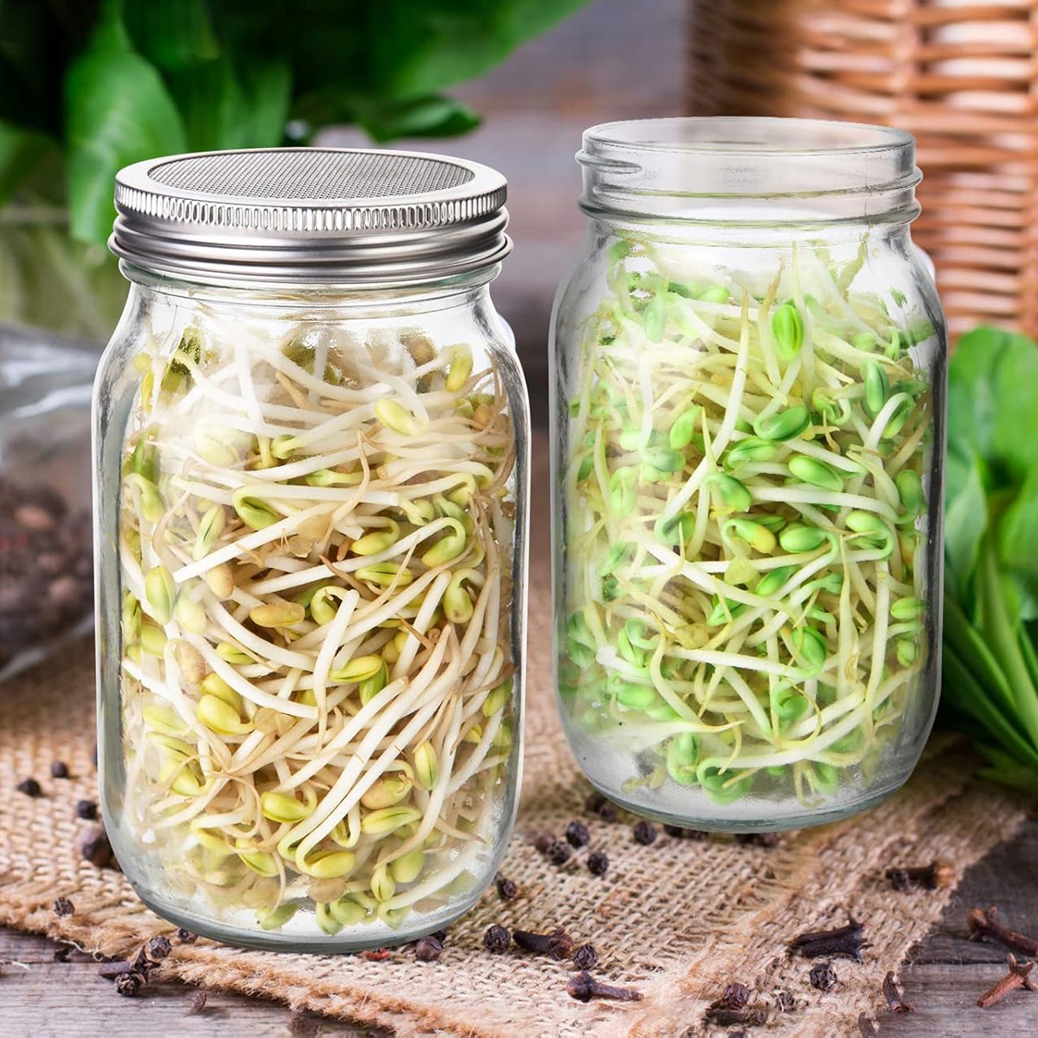 Наші баночки з проростанням продаються з двома вимивальними та багаторазовими використанням із кришками, що замикають світло. Багато паростків віддають перевагу більш темними умовами, оскільки вони можуть рости довше і бути солодшими. Ви можете розмістити насіння в прохолодне місце, під затінювальною кришкою, яка поглине непряме сонячне світло, що прискорить їх зростання. Наприклад, квасоля, крупи тощо