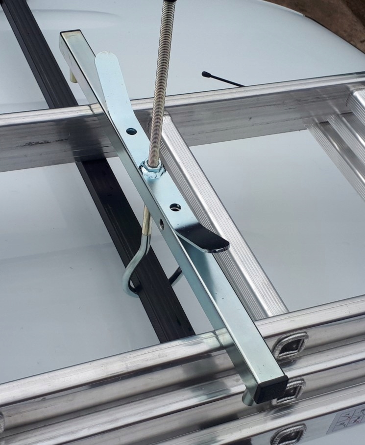 Кріплення для кріплення драбини до багажника автомобіля. На ручках є отвори для навісного замка для захисту драбини від крадіжки. Ручки оцинковані, тому не схильні до корозії, підходять для всіх типів драбин