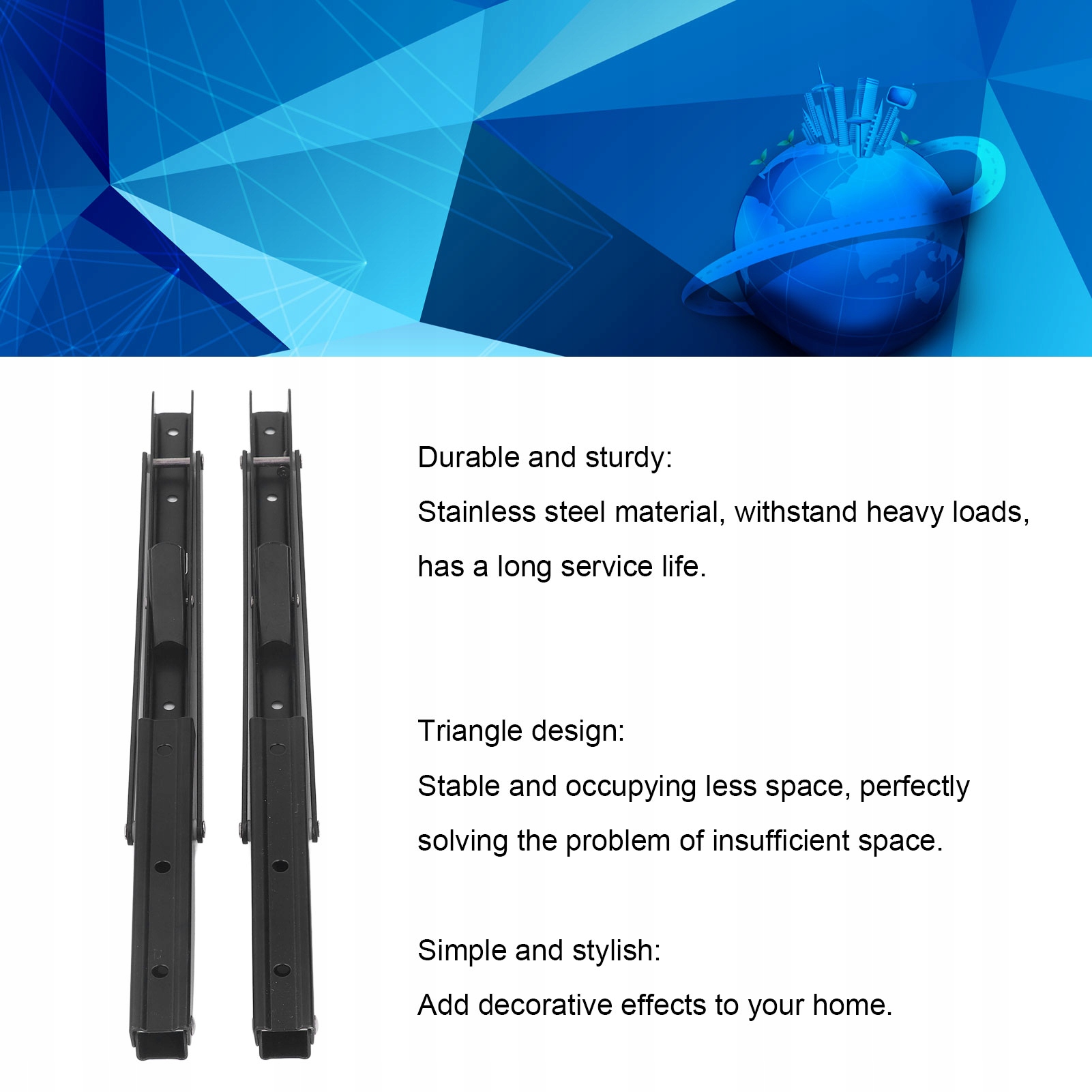 1. Міцний і твердий: виготовлений з матеріалу з нержавіючої сталі, складна кронштейна може витримувати важкі навантаження і має довге життя.