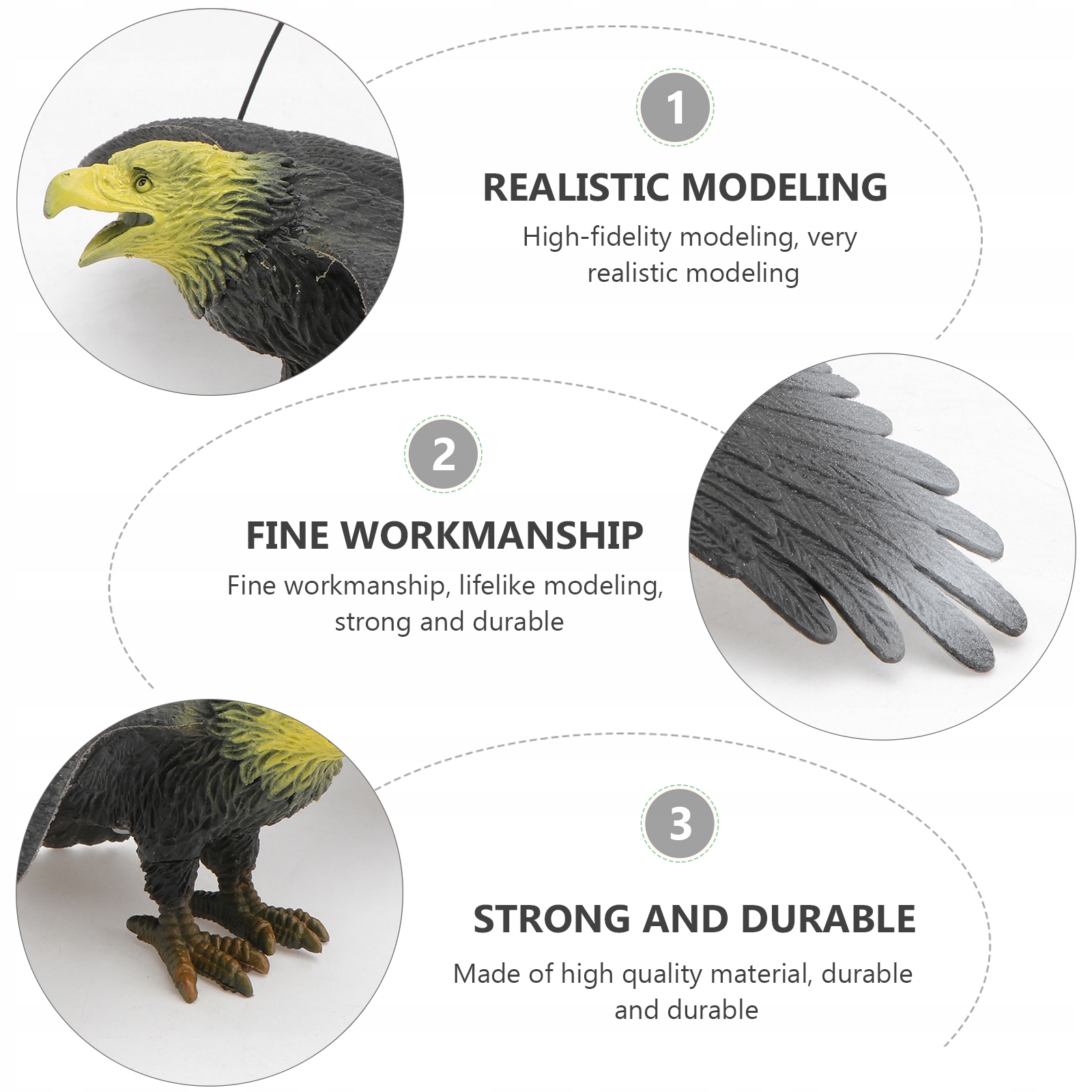 Ця іграшкова модель орла виготовлена з добре підібраного матеріалу, який є дуже міцним.