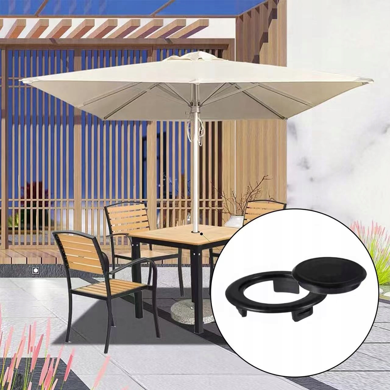 ✨[Просте встановлення]: вставний отвір для парасольки та заглушка легко встановити, просто вставте заглушку для парасольки в отвір у центрі столу у внутрішньому дворику.