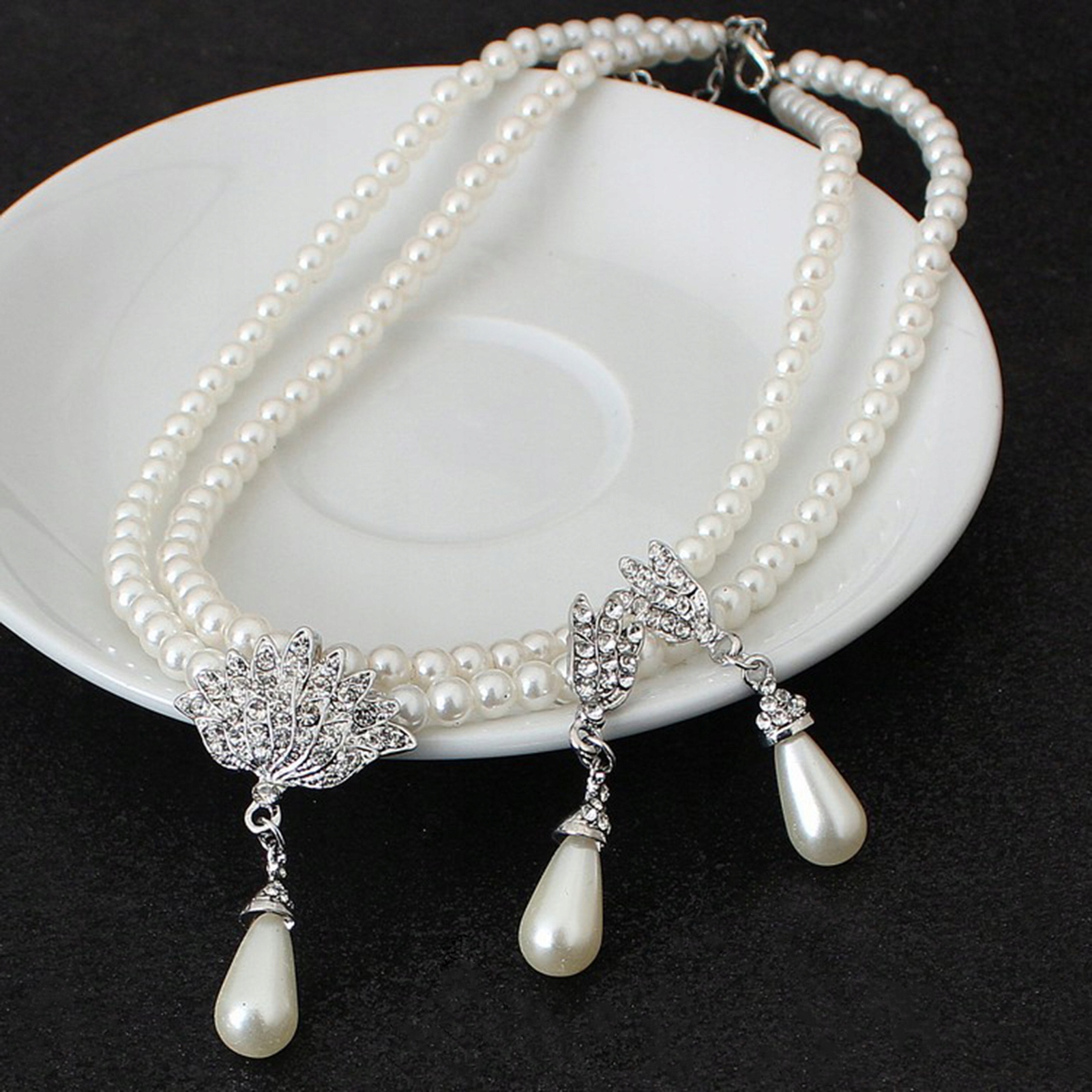 - Двоє -ланцюгова конструкція перлинних ланцюгів із вбудованими діамантами та обкладинкою у формі краплі, розкішного стилю.