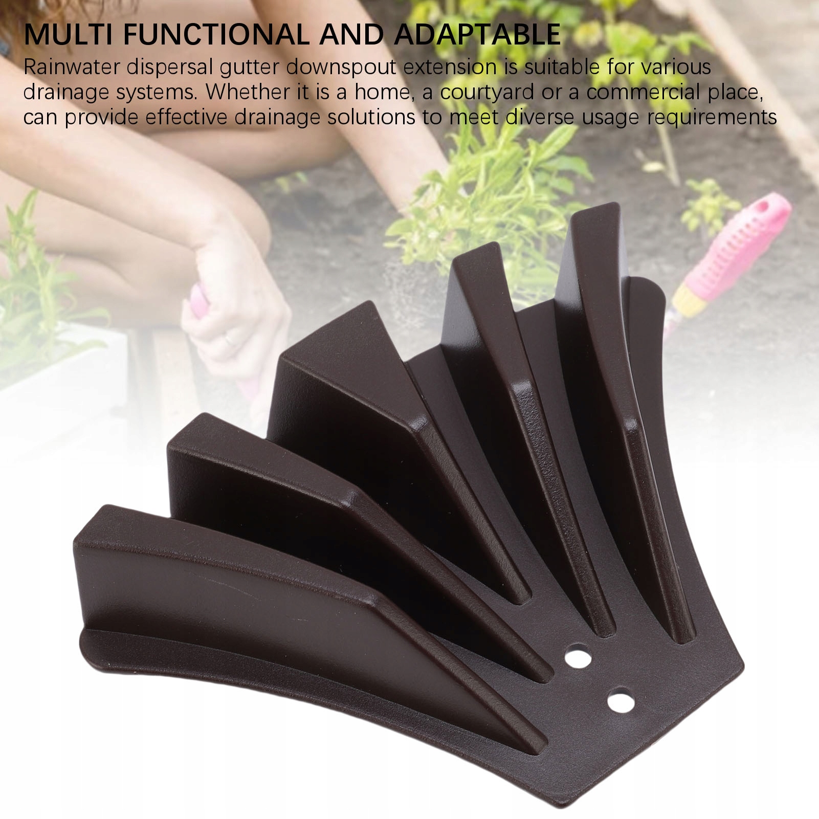 4. Багатофункціональний і гнучкий: подовжувач жолоба для дисперсії дощової води підходить для різних дренажних систем. Незалежно від того, чи це будинок, подвір’я чи комерційне приміщення, він може забезпечити ефективні дренажні рішення для задоволення різноманітних вимог щодо використання