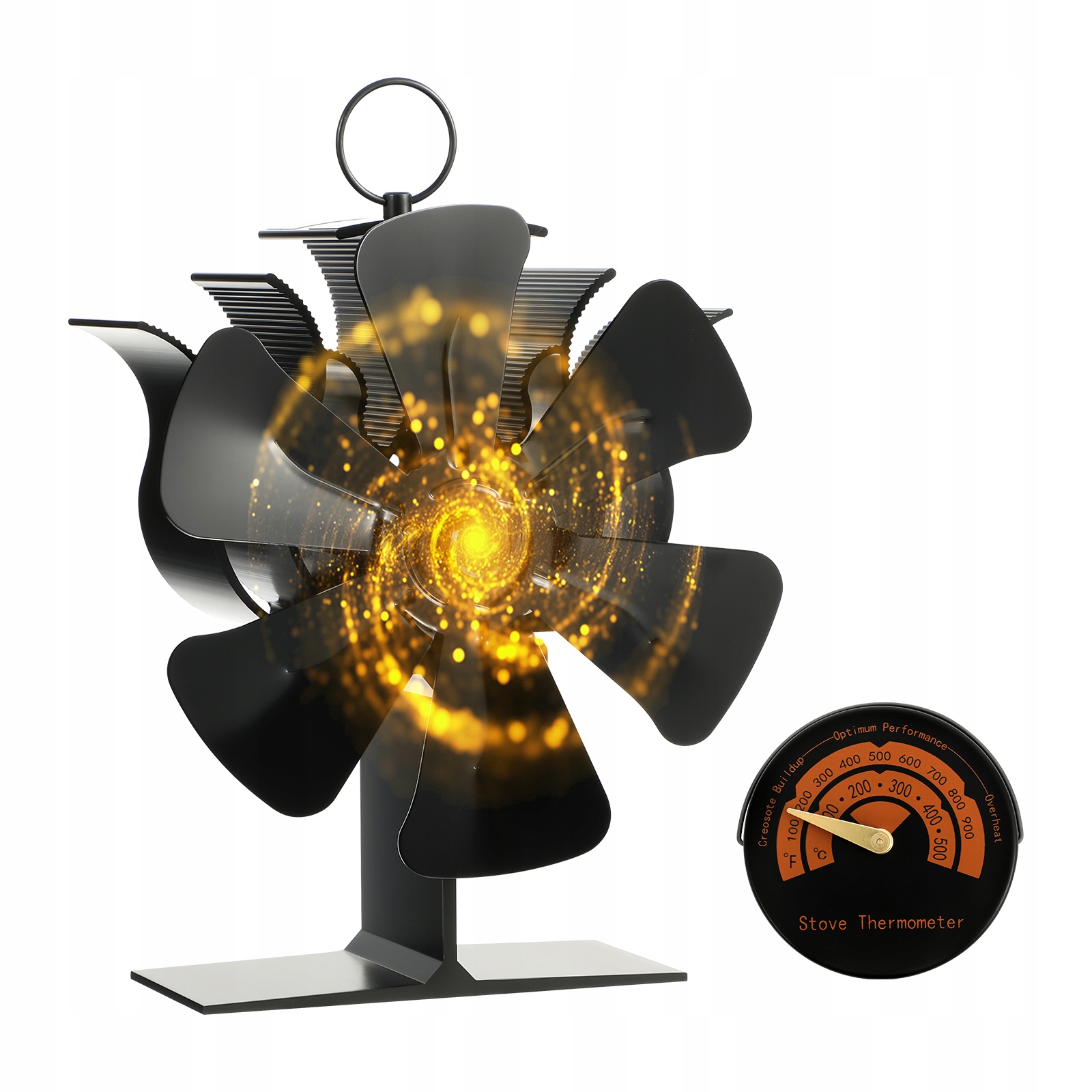 Наш вентилятор печі підтримується шляхом перетворення тепла з печі в дерево в джерело живлення, вам не потрібна акумулятор або електроенергія, ефективно розподіляє гаряче повітря і дозволяє насолоджуватися теплою зимою. Наш вентилятор був розроблений з шумом, він також оснащений термометром печі для вимірювання температури печі, забезпечує вам затишний і безпечний життєвий простір.