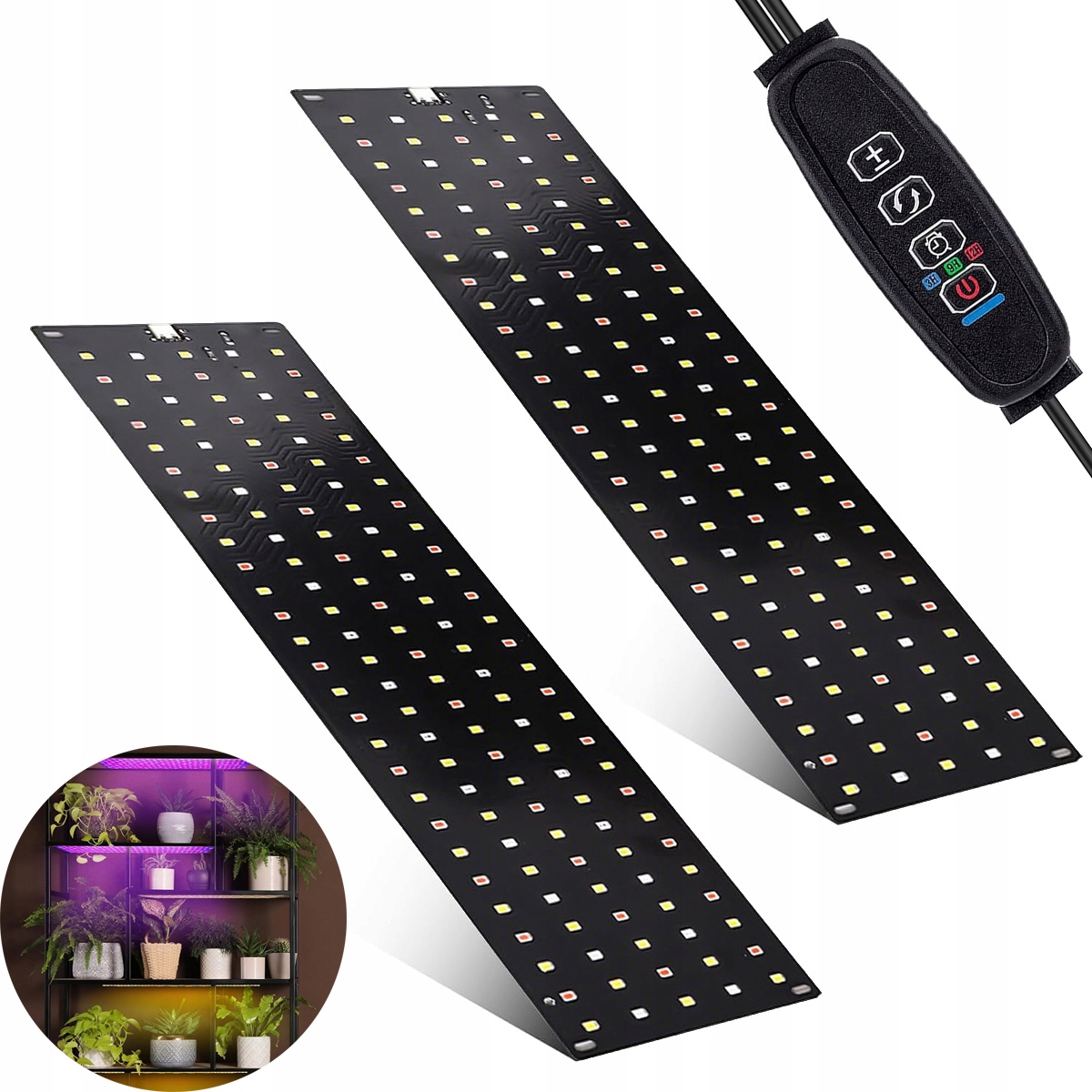 2 ультратонкі лампи для рослин (30 x 8 x 0,15 см) з алюмінієвою задньою панеллю, які виробляють мало тепла та забезпечують відмінне розсіювання тепла, холодніше, ніж у порівнянних моделей. Науково оптимізовані світлові хвилі (95% поглинання рослинами) імітують природне сонячне світло, а науково оптимізовані спектри світла помітно прискорюють ріст рослин, використовуючи лише 20 Вт (90% економія енергії порівняно зі стандартними світлодіодами)