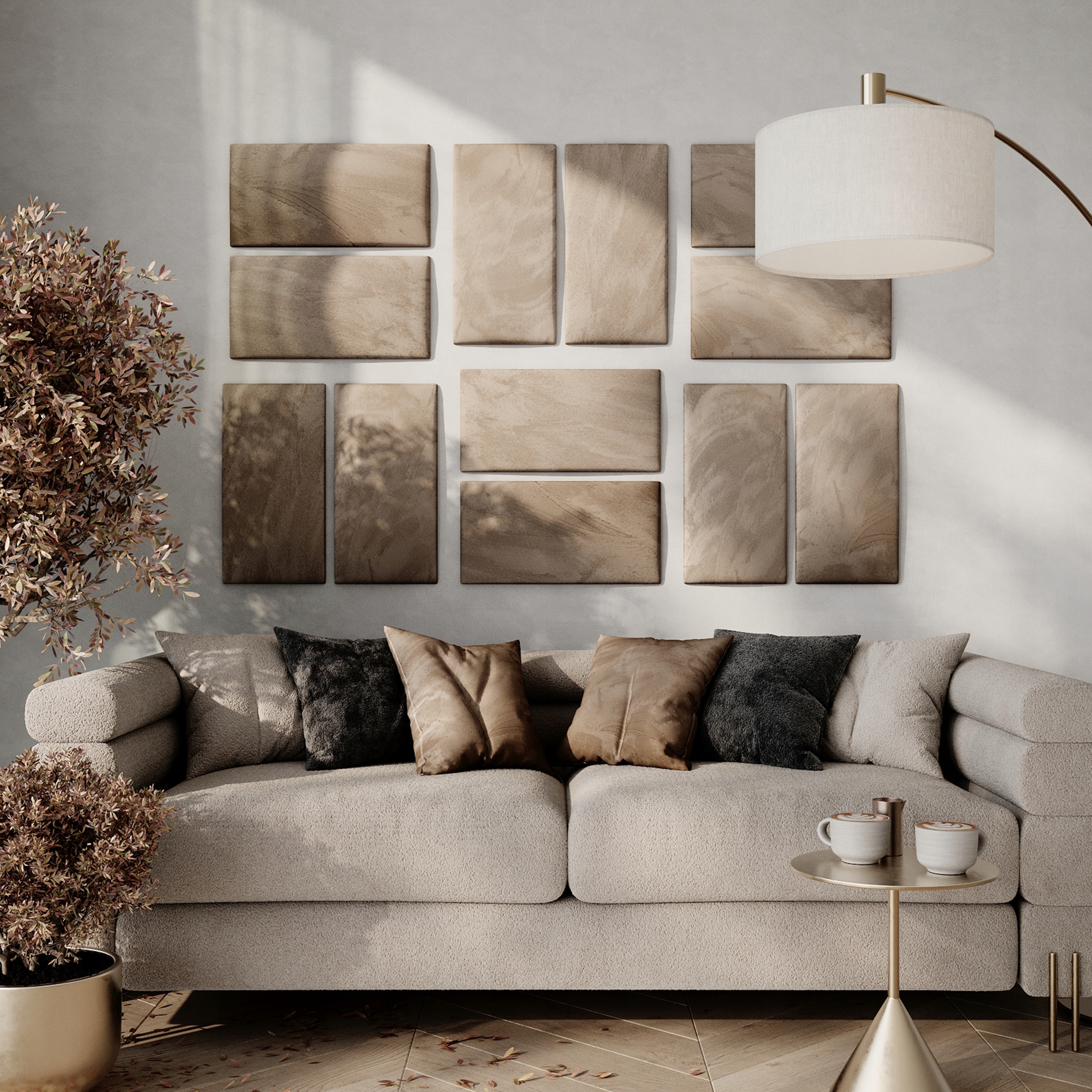 Зазвичай кріпляться до стін або стелі, ці панелі мають щільну товсту оксамитову тканину для покращеного звукопоглинання та пропонуються в широкому діапазоні кольорів, щоб доповнити кімнату. декор.
